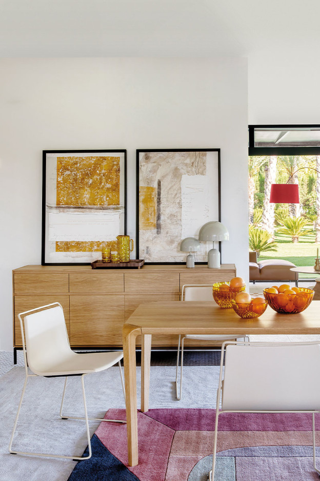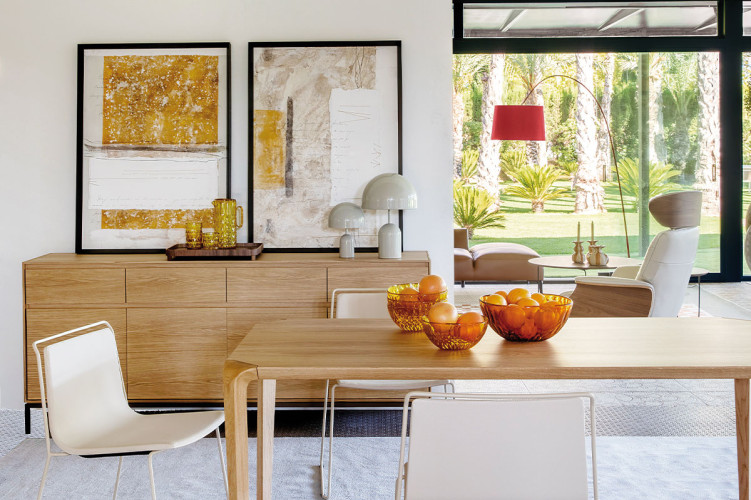 Arrow tiene la estructura chapada en madera natural en acabado roble, roble con nudos o nogal y sus patas son metálicas con acabado epoxy en color negro.