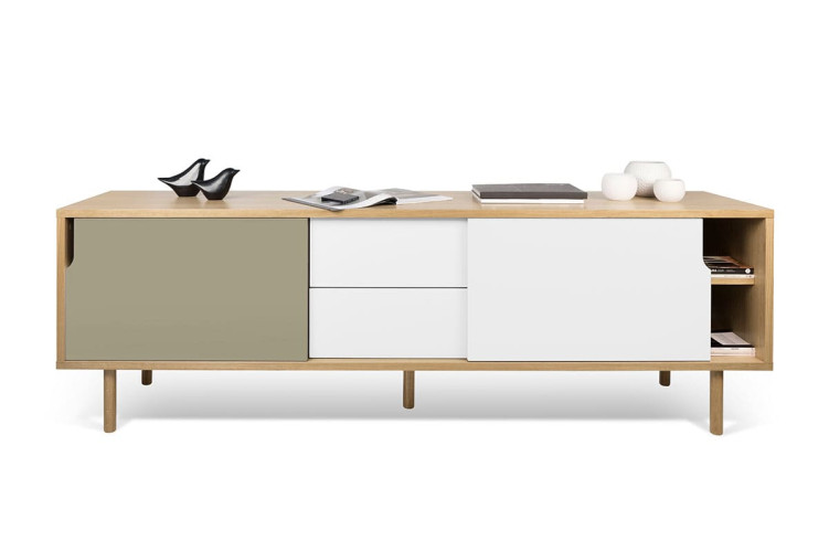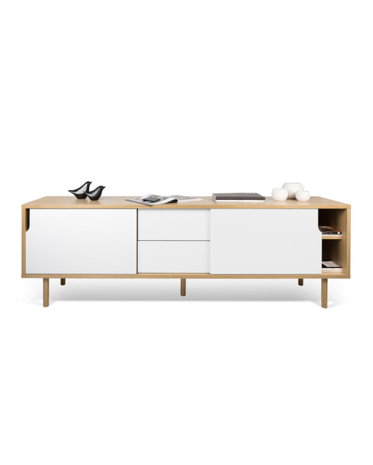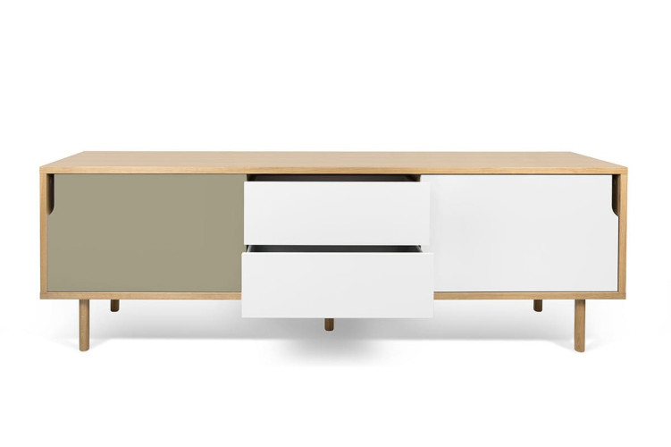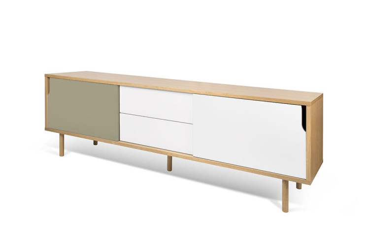 El aparador Dann 201 es una versión más amplia de la consola original. Además de las dos puertas correderas tiene dos cajones en el medio para aumentar el almacenaje. Medidas: 201x45x65 cm.
