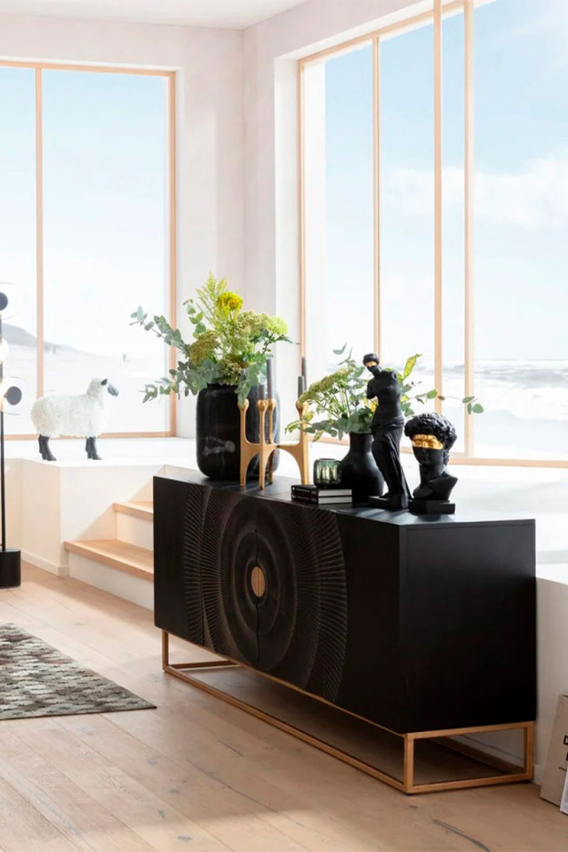 Renueva tu espacio con el aparador Madeira, una pieza que combina diseño artesanal y estilo contemporáneo en perfecta armonía. Su silueta limpia y rectangular se realza con un marco metálico, aportando un toque de lujo que transforma cualquier estancia.