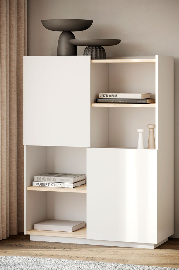 El aparador Nina es un mueble lleno de diseño, que aportará al salón de tu hogar un ambiente elegante, limpio, y en el que el orden no dejará de permanecer. Además, cuenta con una gran capacidad de almacenamiento.