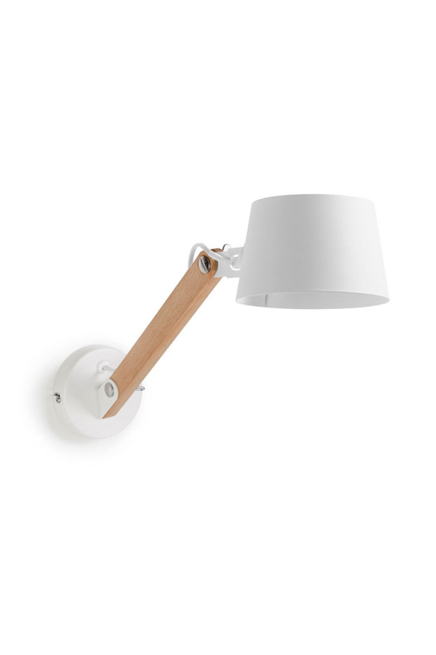 La base del aplique es en acero, mientras que el brazo es en madera de haya.