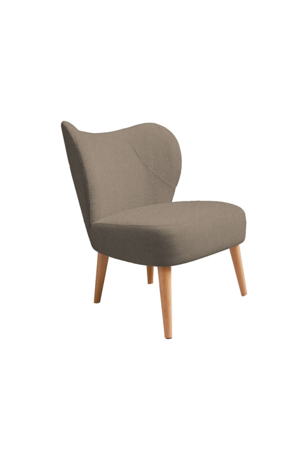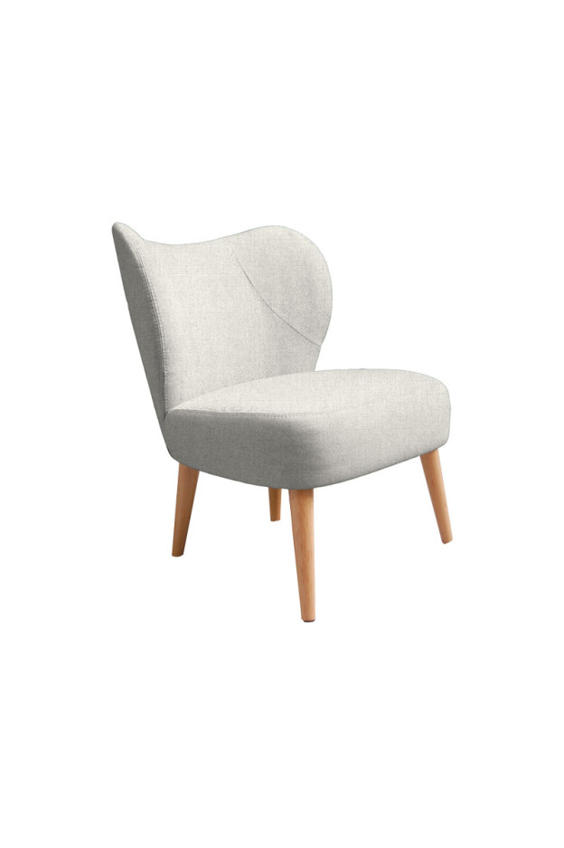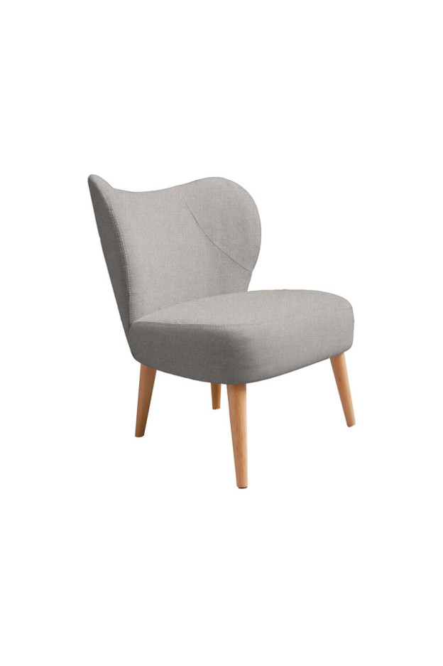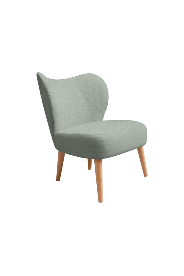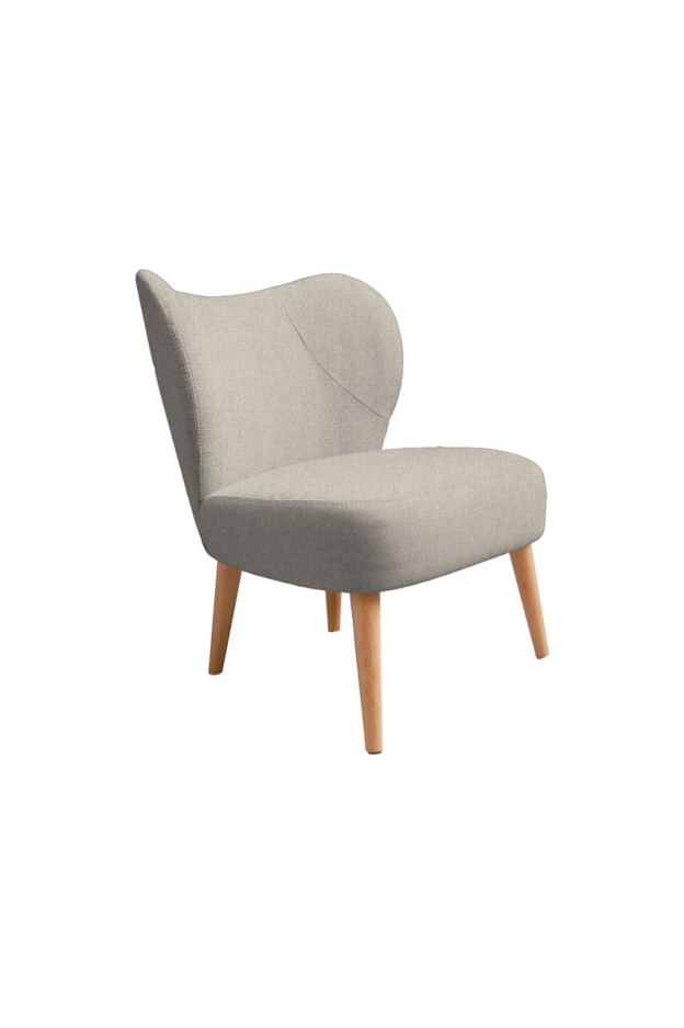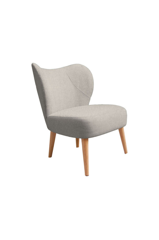 Estructura de madera maciza recubierta de espuma de poliuretano. Patas de madera de haya.