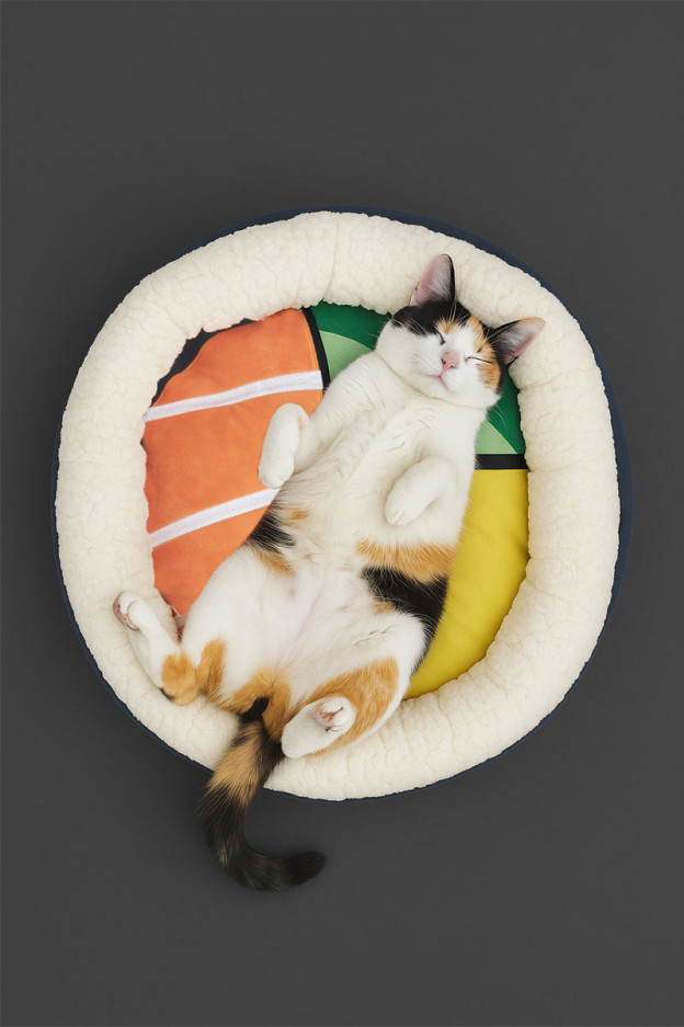 La cama Kamaki llega con un diseño único y encantador, su estampado de rollito de sushi es perfecta para quienes buscan algo diferente y divertido en casa. Es una cama ideal para gatos y perros pequeños.