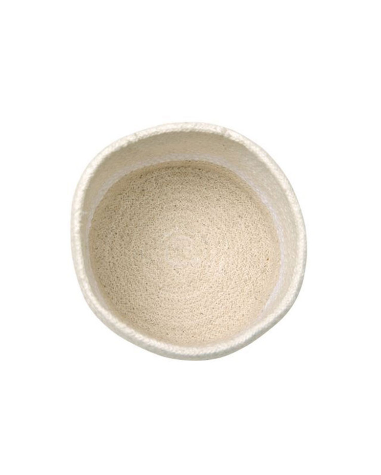 Mini cesta lavable de algodón trenzado. Está diseñada en tres colores y se ha fabricado a mano con formas irregulares. Gracias al toque vintage de este recipiente, lo podremos colocar en cualquier lugar de la casa para guardar objetos pequeños. Disponible en varios acabados.