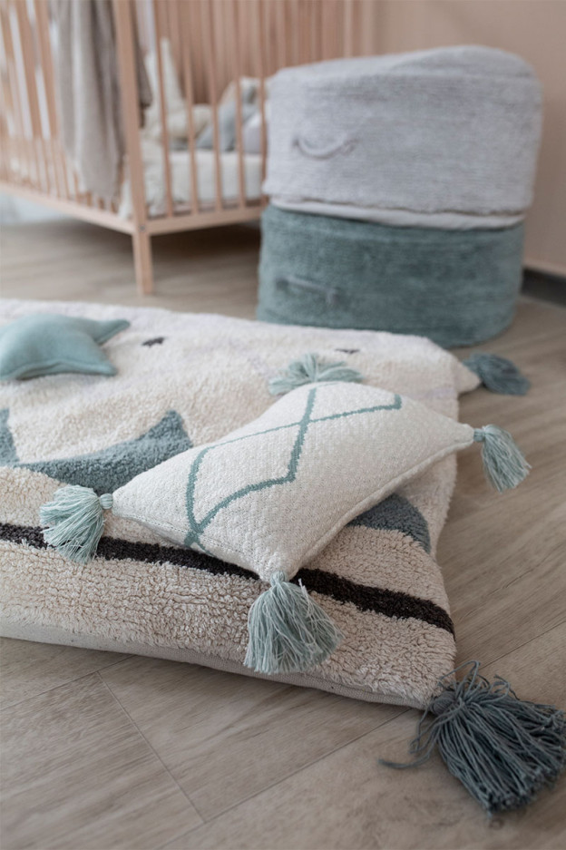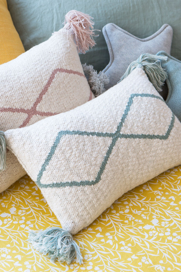 Oasis es un cojín con un clásico diseño de rombos en dos tonos, un complemento idóneo para aportar a nuestras estancias y sofás un ambiente marroquí o como si de un Riad se tratase.