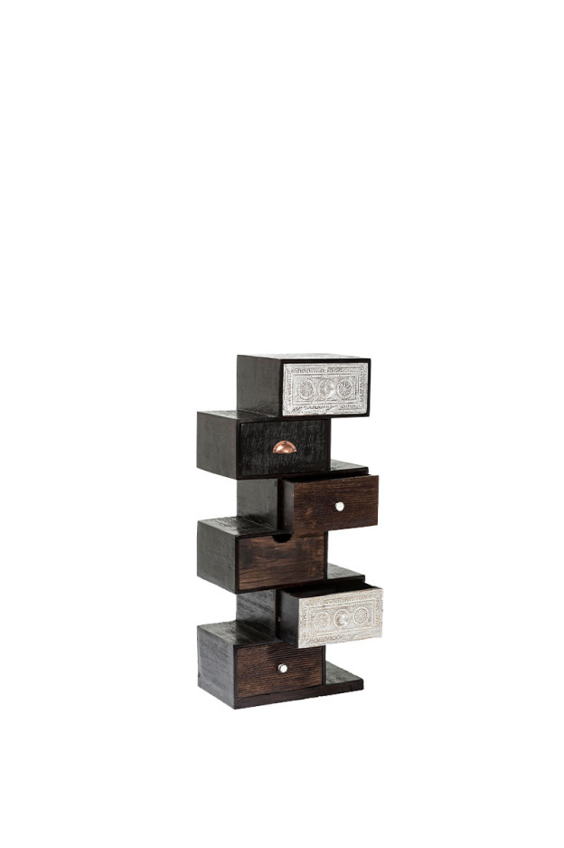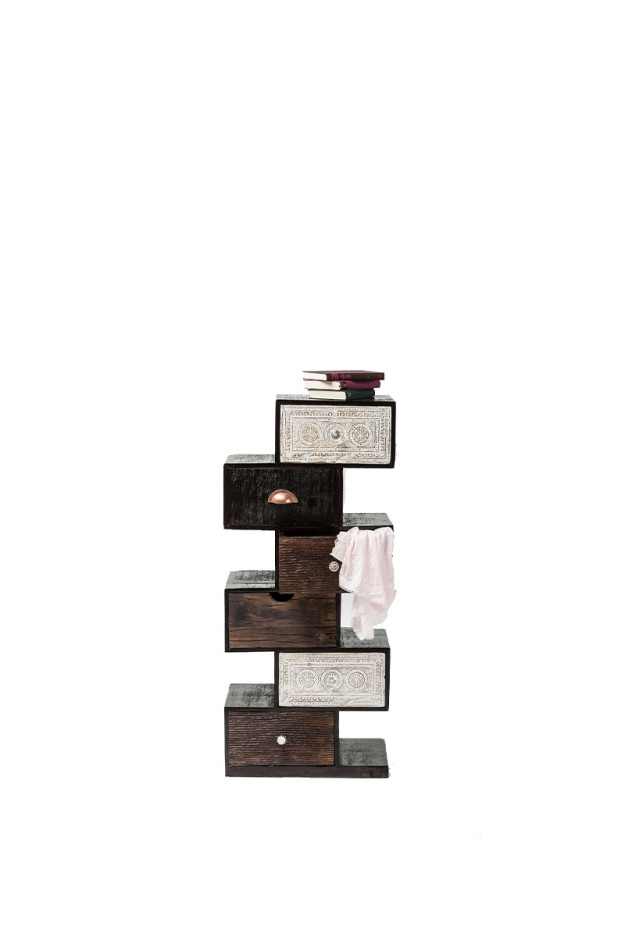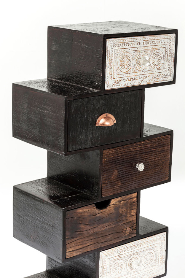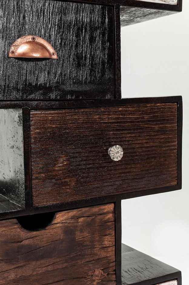 Cómoda de cajones en madera colocados de forma irregular. Diferentes medidas y modelos.