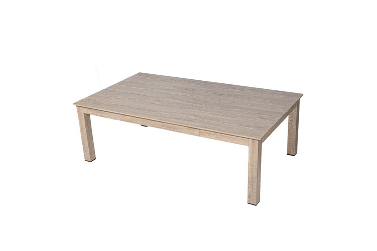 La estructura de todos los elementos del conjunto están fabricados en aluminio con acabado imitando a la madera. Sus respaldos van recubiertos en cuerda.