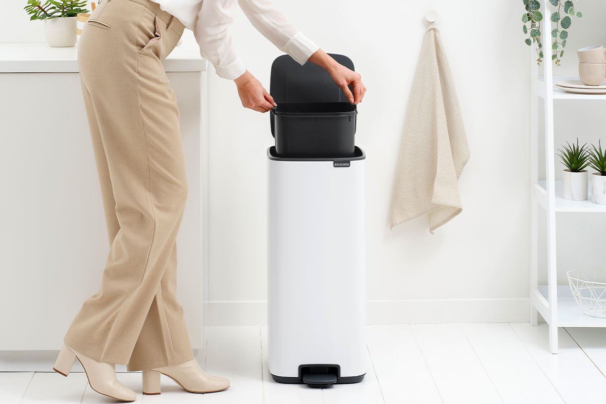 Descubre el cubo rectangular pedal Bo 30L, donde el diseño se une con la funcionalidad más inteligente. Diseñado para aquellos que valoran el estilo en cada rincón del hogar.