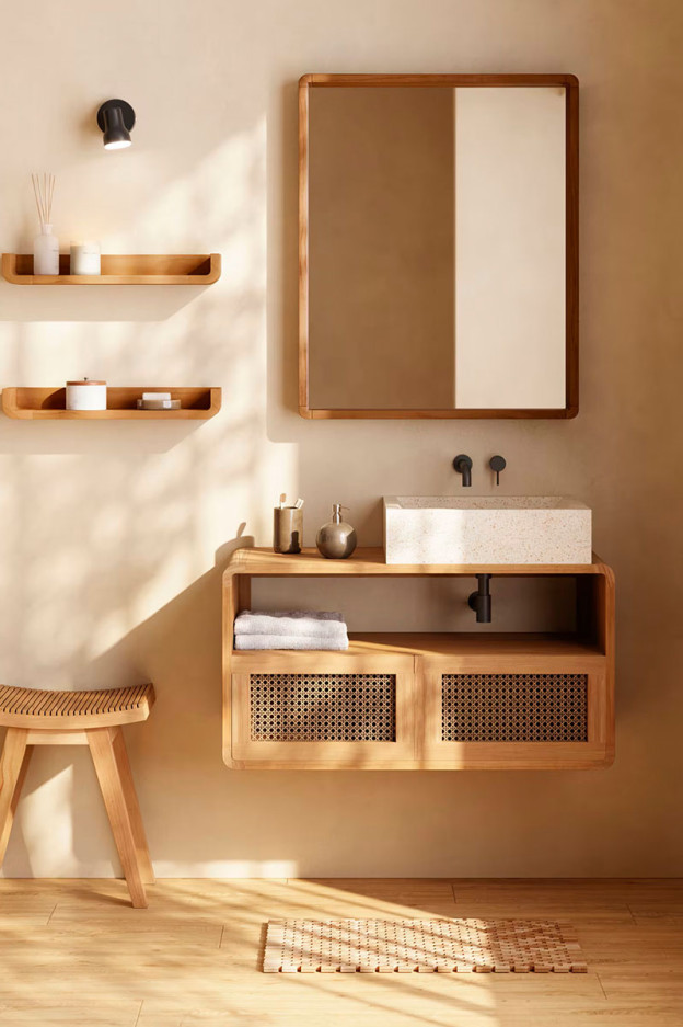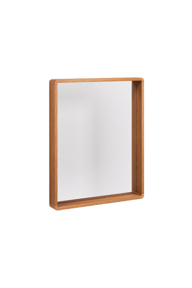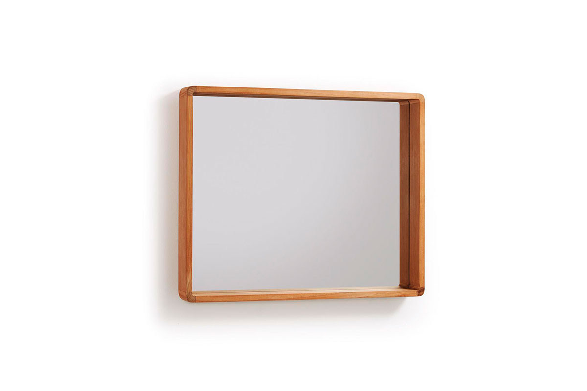 El espejo Bom cuenta con una forma rectangular hecha de madera maciza de teca natura que se adapta totalmente a la humedad por lo que es ideal para formar parte del baño.