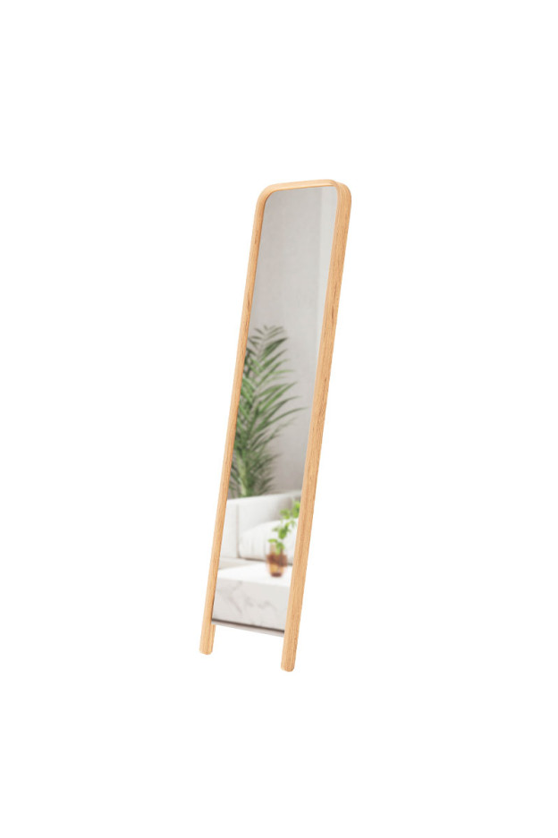 Transforma cualquier habitación con el sofisticado encanto del espejo de pie Bellwood II. Con un diseño curvado y contemporáneo, este espejo destaca por su marco de madera lisa, elaborada a partir de materiales sostenibles, combinando estilo moderno con conciencia ecológica.