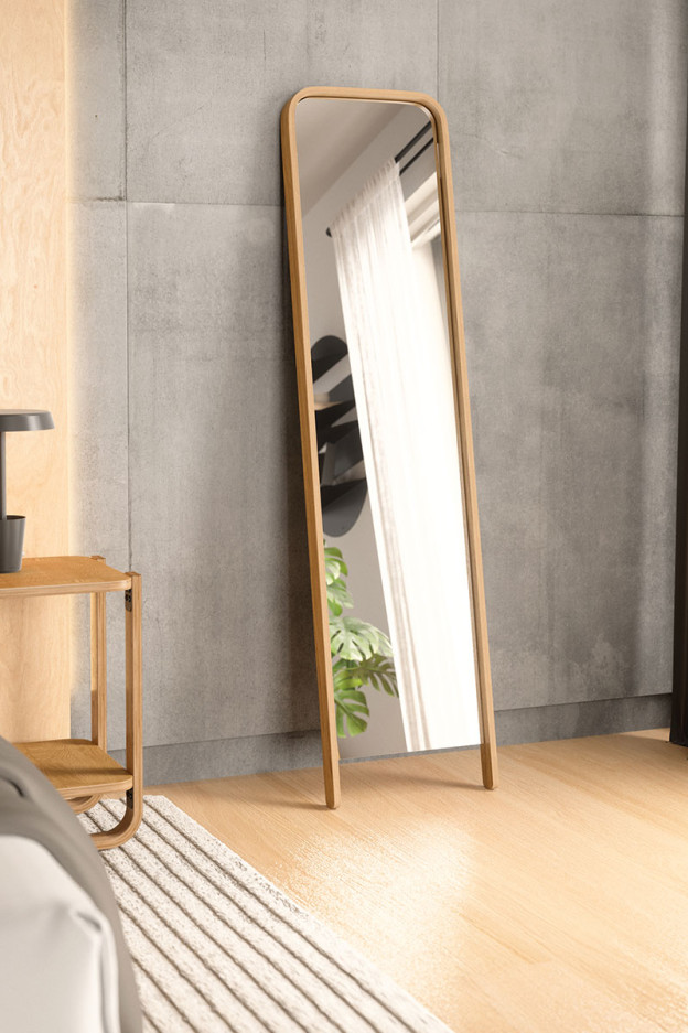 Es ideal para aportar luz y amplitud a tus espacios sin ocupar demasiado espacio. Es perfecto para dormitorios, recibidores, salas… y añadir un toque cálido gracias a las vetas y texturas únicas de la madera natural.