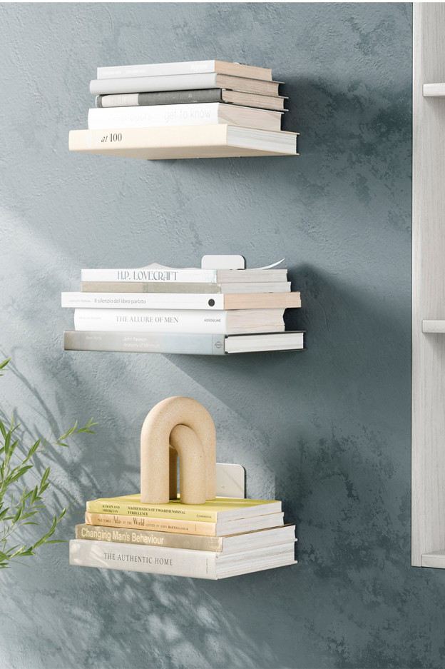 La estantería Conceal es perfecta para guardar y exhibir tus libros favoritos. Incluye 3 estantes de color plateado. Tiene un pequeño soporte para evitar que se caiga la portada del libro y así lograr un efecto de repisa flotante. Está fabricado con un acabado ecológico.