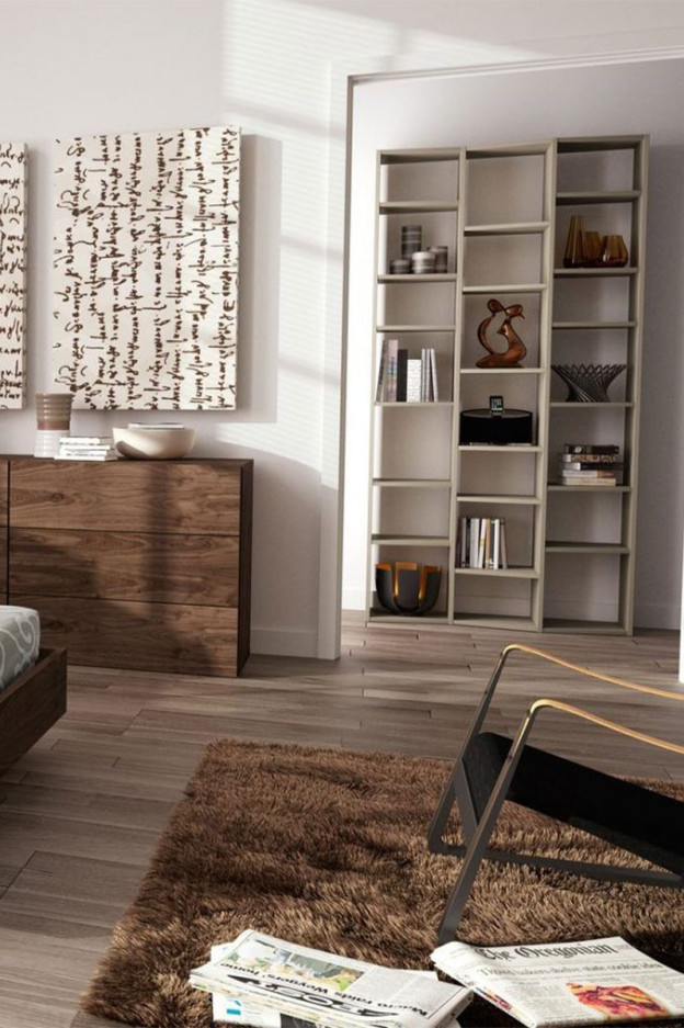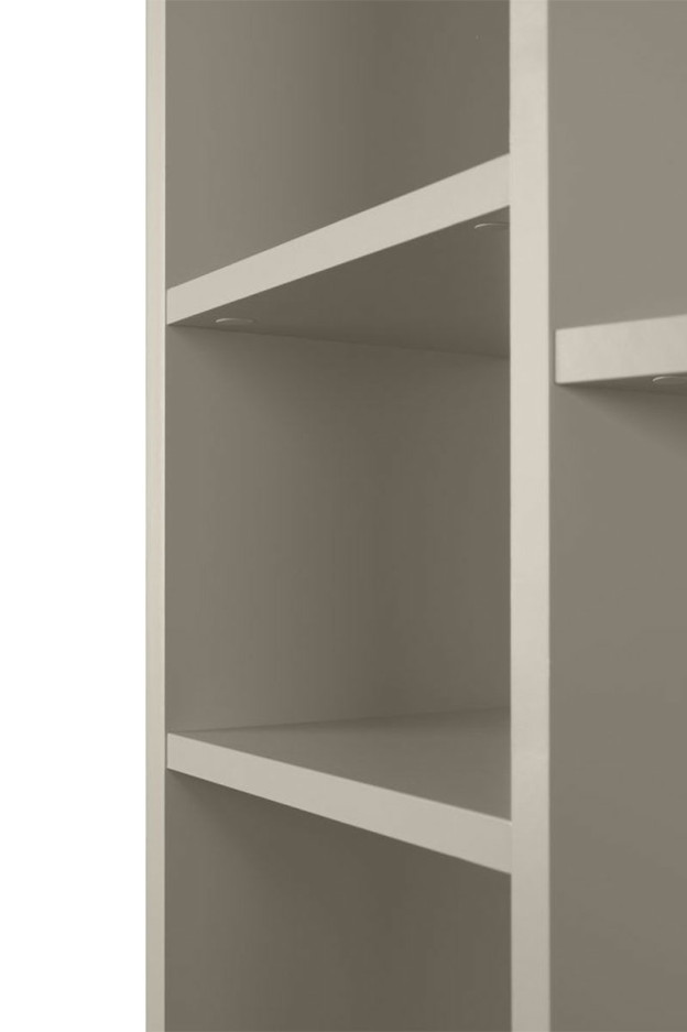Estructura de madera de MDF lacada en color blanco o gris mate. Perfil ondulado.