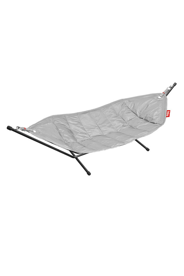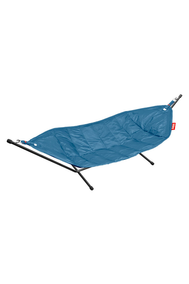 Nuestra hamaca Headdemock es plegable, fabricada de poliester con soporte de metal en color negro y goma, con capacidad para 1, 2 o incluso 3 personas.