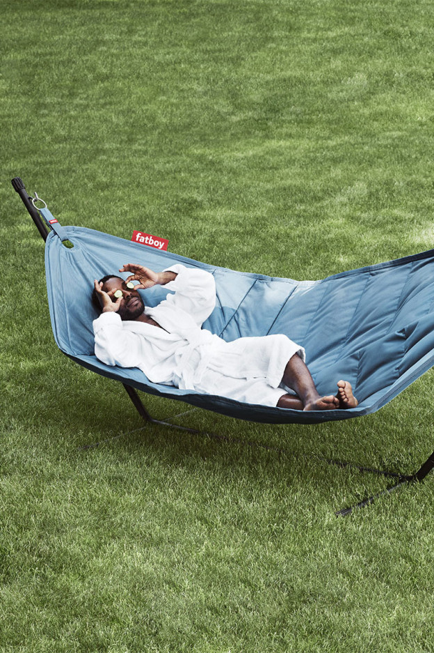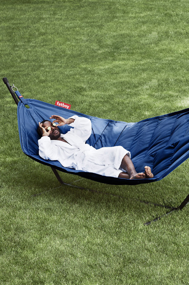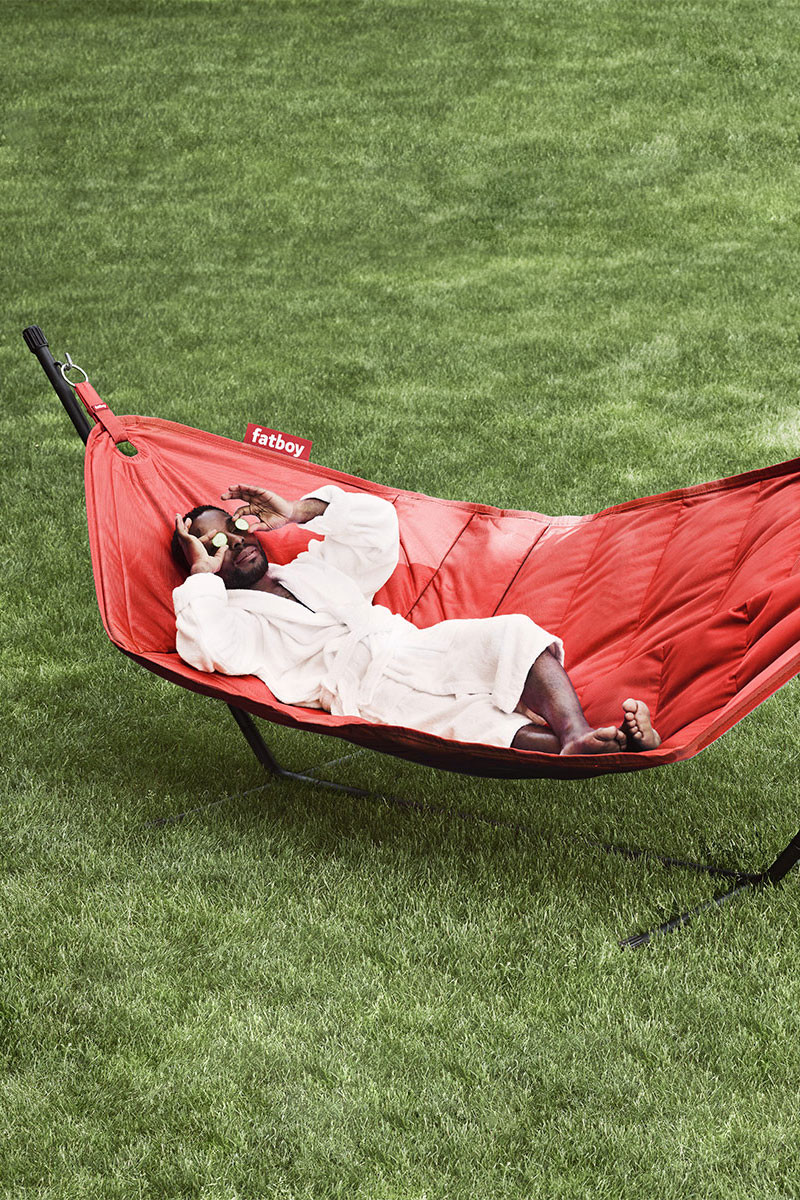 Tumbado y balanceándote en esta hamaca suave pero resistente. Es muy fácil de transportar en su propia funda (precio no incluido). Repelente al agua y a la suciedad. Disponible tambien con cojín o funda. Medidas: 330x100x110 cm.