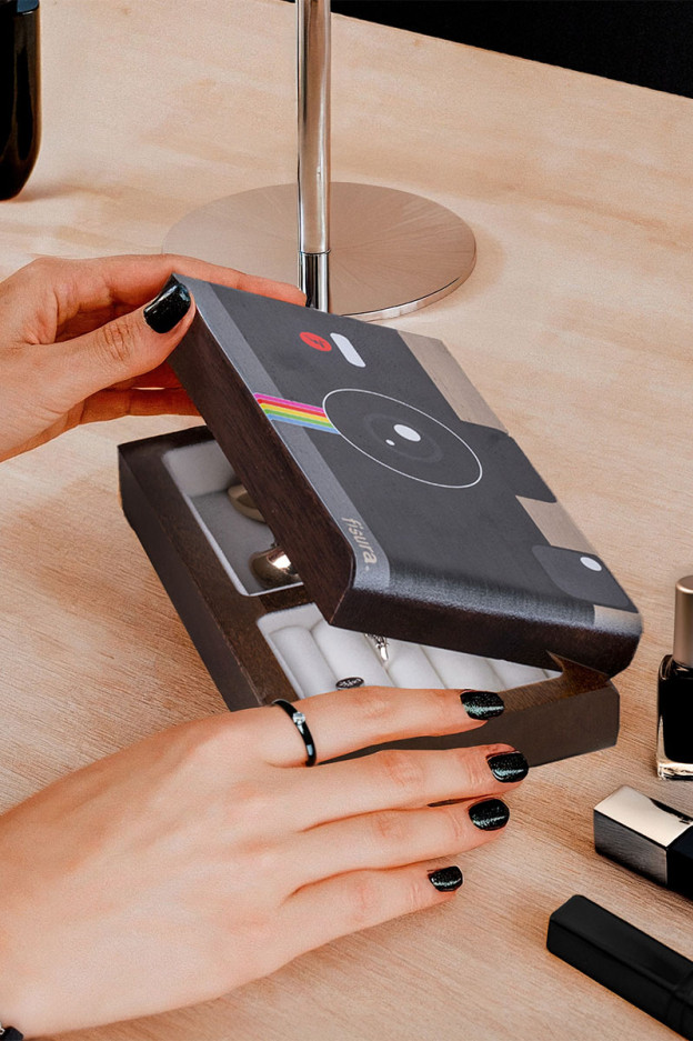 Si amas la fotografía, lo retro o simplemente quieres un joyero único y diferente, este joyero con forma de cámara vintage está hecho para ti. Su diseño con detalles estampados lo convierte en una pieza decorativa ideal para tu tocador, tu estantería o para llevar contigo en tus viajes.