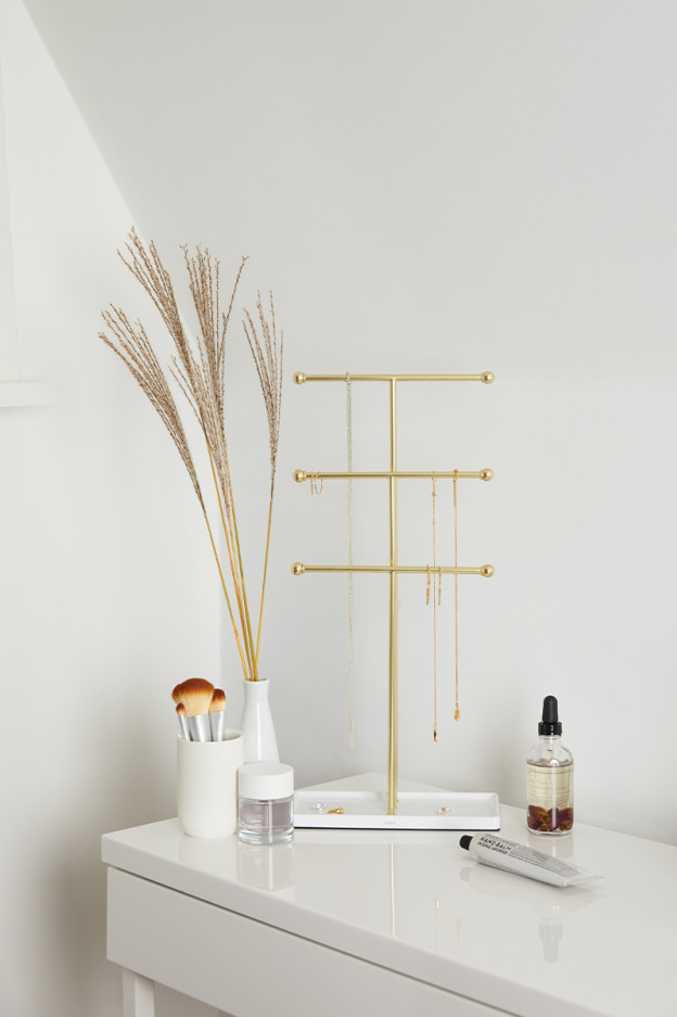 El Joyero trigem es perfecto para colgar todos tus collares y almacenar tus joyas. Tiene un elegante diseño que complementara con cualquier habitación de su hogar. La base es acolchada para que la superficie de la mesa no se dañe. Está fabricado en acero con un acabado ecológico.