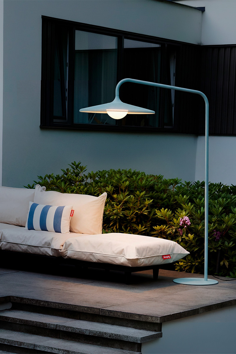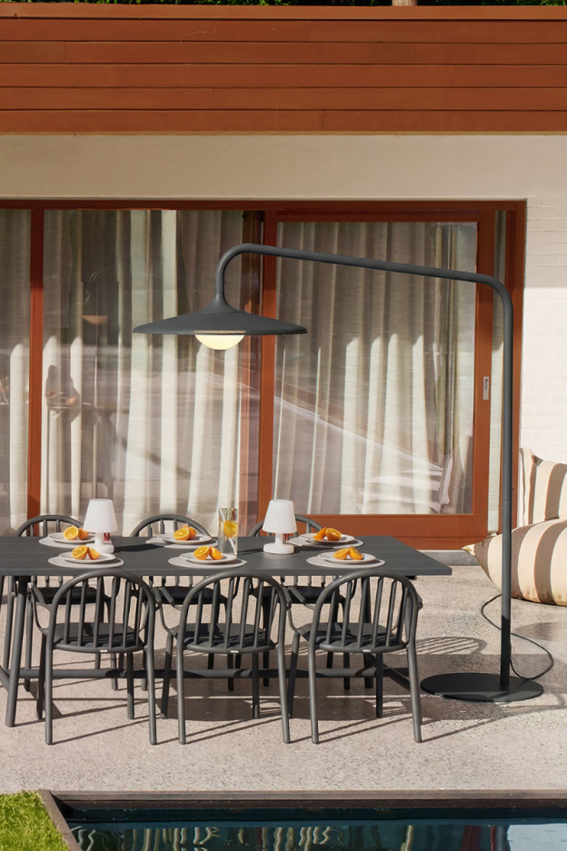 La lámpara de exterior Archigrande ha sido diseñada para convertirse en la protagonista de tu terraza, jardín o zona lounge. Su imponente y su elegante arco crean una presencia que transforma cualquier espacio exterior en un ambiente acogedor y con estilo.