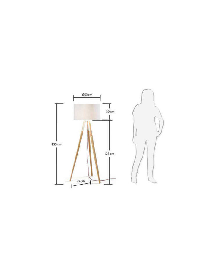 Las lámparas de pie con pie de trípode son invitadas habituales a la revistas de decoración. Este tipo de estructuras las hacen más estables, decorativas y elegantes, por lo que si buscas una lámpara de pie moderna, la Trish es la tuya. Juega con el blanco el negro o la madera y compra esta pieza tan original y en tendencia. A pantalla está elaborada con tela y la bombilla E-27 no está incluida. Medidas: 50x50x157 cm. Disponible en varios colores.