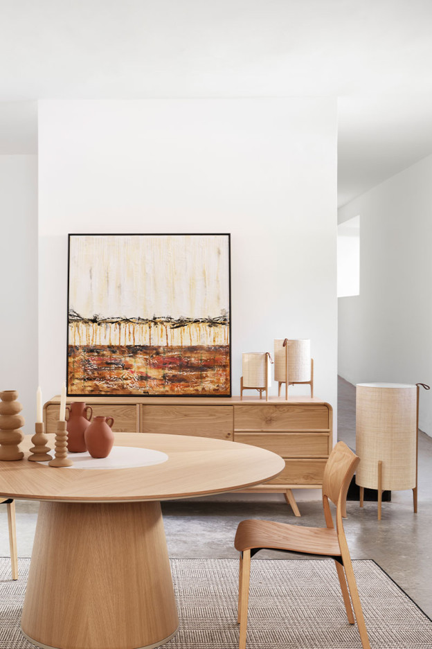 Greta es una lámpara de pie con un diseño único y atemporal, que proporcionará a cualquier estancia un ambiente lleno de naturalidad y contemporaneidad.