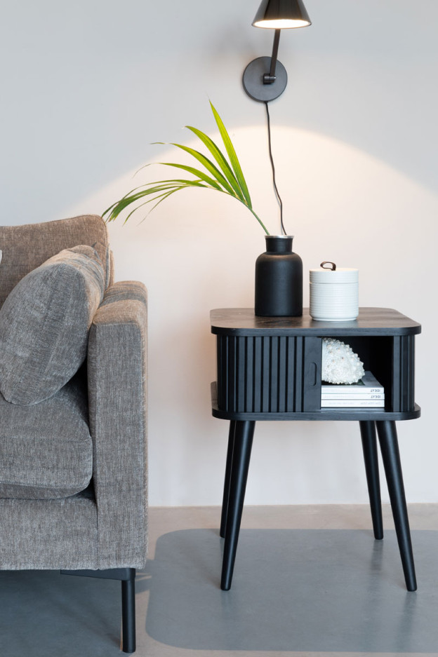 Nuestra mesa auxiliar Barbier es perfecta para colocar todas esas pequeñas cosas que quieres tener a mano y la tenemos disponible en acabado natural, nogal o negro.