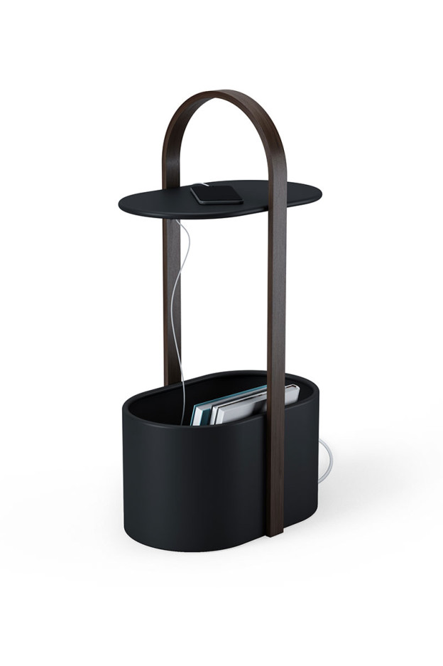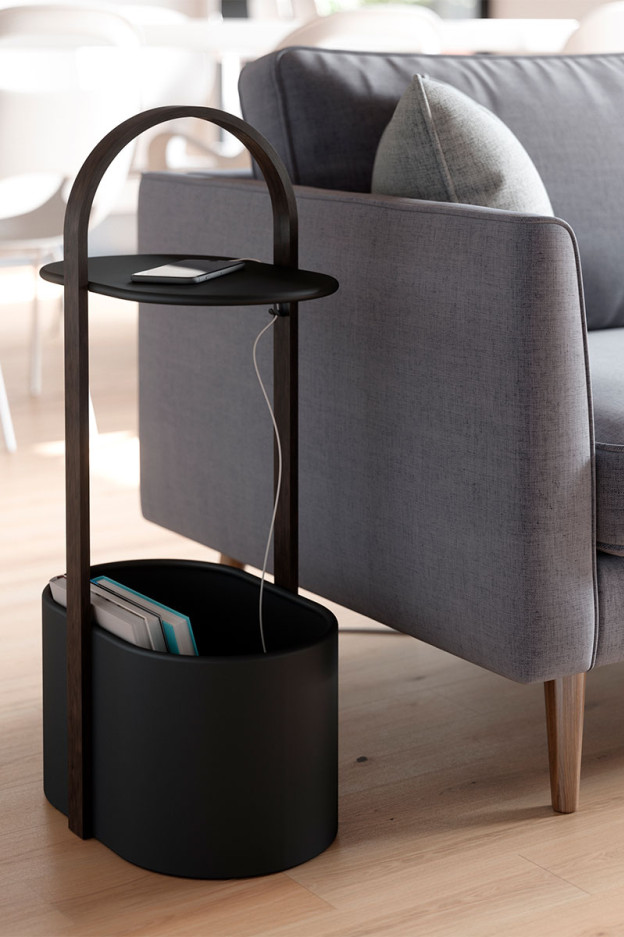 Bellwood Storage es versátil, además de utilizarla como una mesa auxiliar donde podrás dejar un libro, una copa o tu móvil, también es un organizador de cables ya que tiene un gancho debajo de la tapa para que puedas tener tu cable de carga ordenado y el contenedor inferior es ideal para utilizarlo de almacenaje, puedes guardar cosas más grandes, cargadores, mantas, revistas... y tiene una apertura para que los cables de alimentación pasen sin problemas.