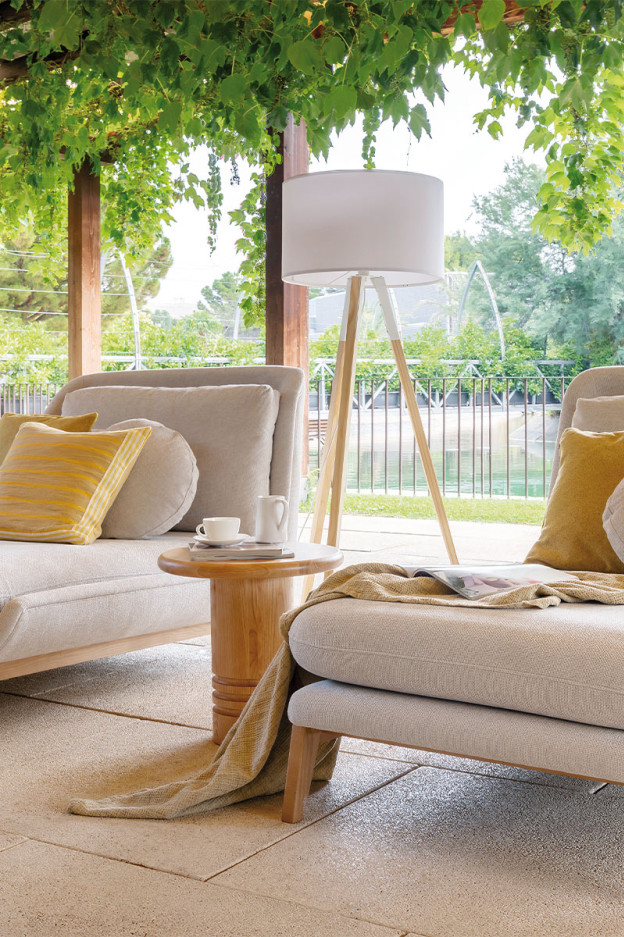 Fabricada en madera chapada de roble, su acabado natural y su silueta aportan calidez y sofisticación a cualquier espacio.