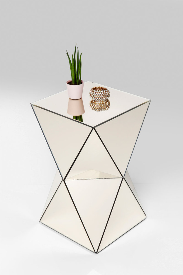 Los espejos de la mesa auxiliar Luxury Triangle garantizan un ambiente elegante y moderno. La estructura es de MDF.