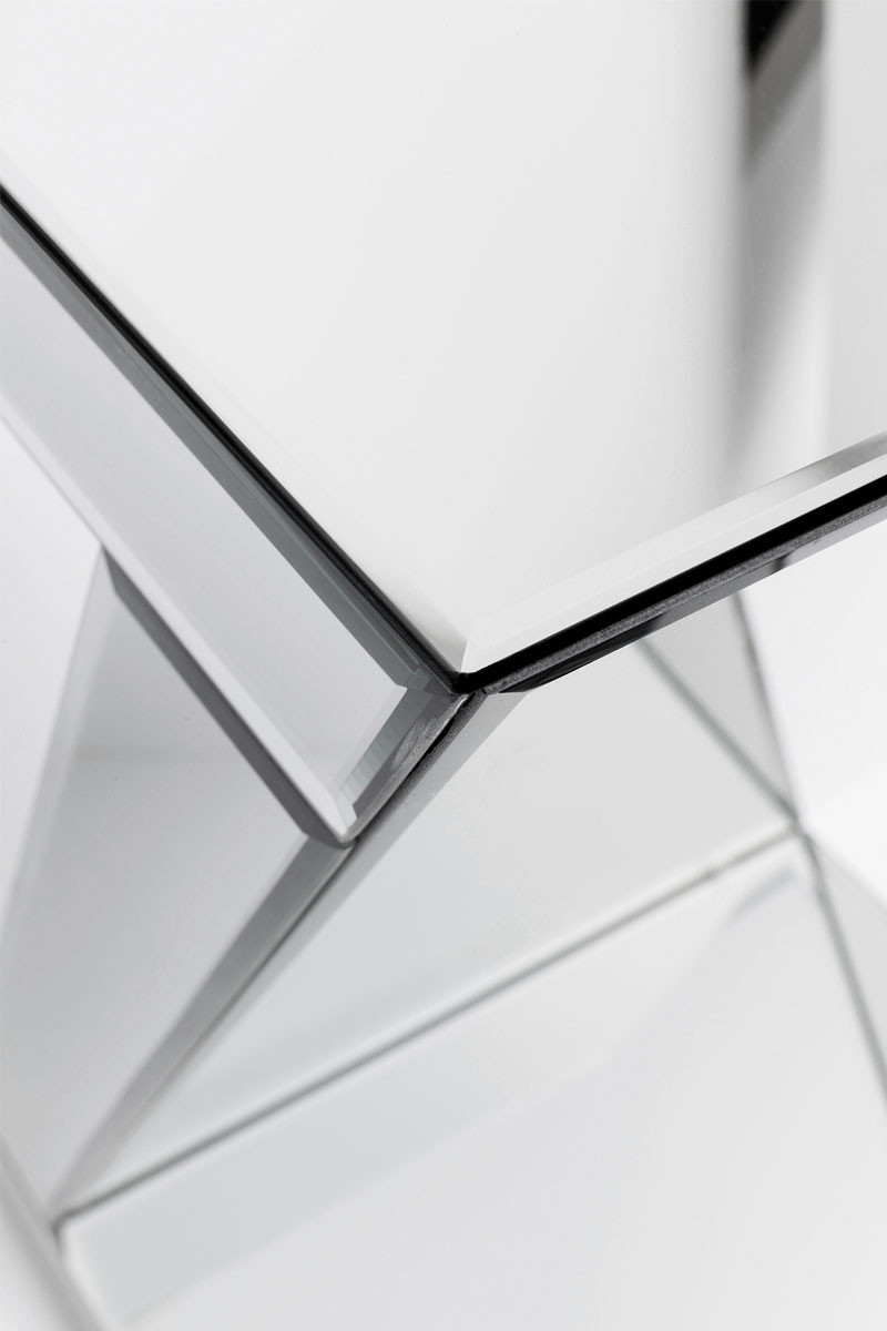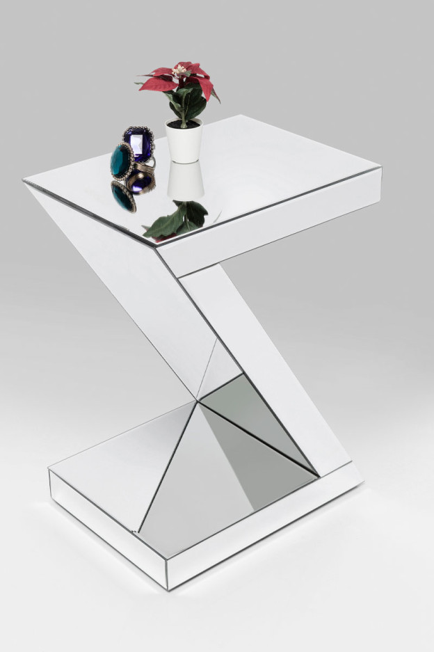 La mesa auxiliar Luxury Z esta forrada de espejos que le dan un aire glamuroso. La estructura es de MDF.