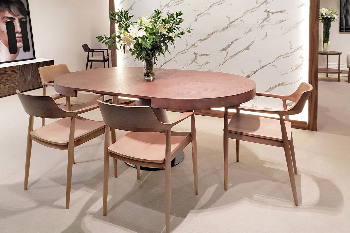 Nuestra mesa Bones es extensible, tiene la pata central de madera maciza de haya y el sobre es de madera en chapa natural.