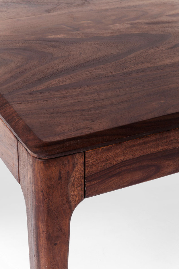 La mesa Brooklyn está elaborada con madera maciza de mango lacada, en color natural o nogal.