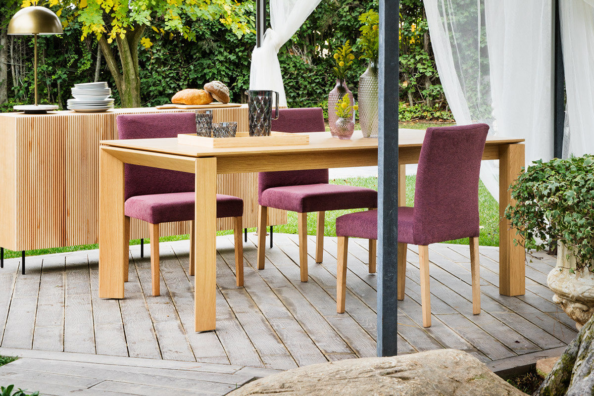 Nuestra mesa Chiara tiene la estructura de madera chapada en acabado roble, nogal o lacada en varios colores, el sobre también puede ser chapado en madera natural de roble o nogal, lacado en varios colores o cerámico en varios acabados, para que puedas crear la mesa que más se adapte y combine con la decoración de tu hogar.