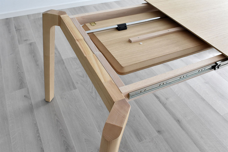 Nuestra mesa de comedor Angela tiene la posibilidad de elegirla con acabadode madera de roble, nogal o lacada en varios colores. Angela puede ser fija o extensible.