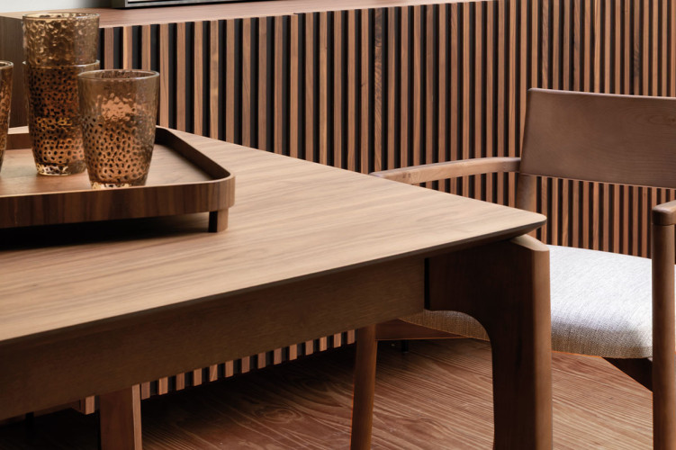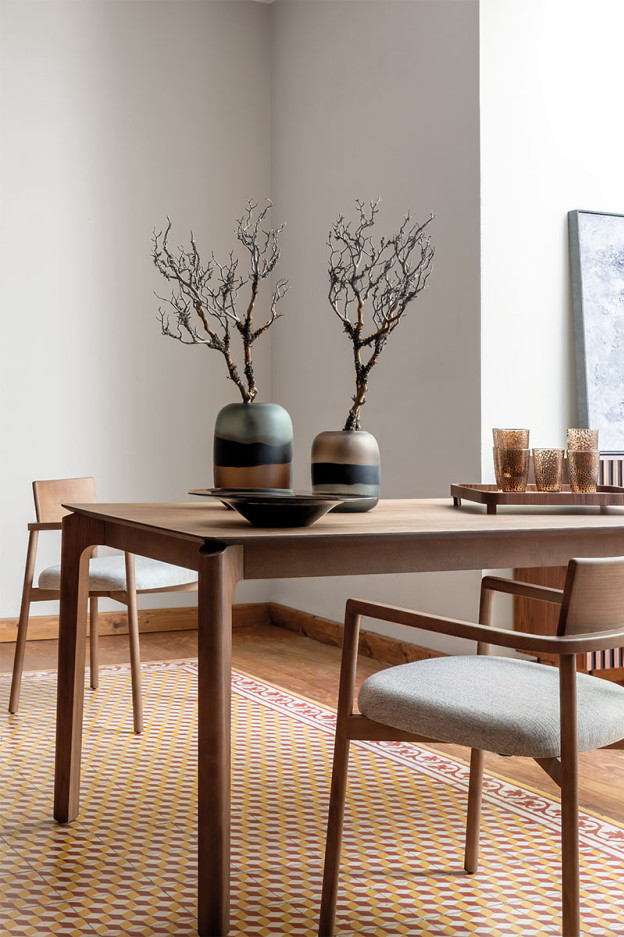 La belleza reside en la sencillez de nuestra mesa Angela, un diseño con cantos redondeados donde se une naturalidad y tradición.