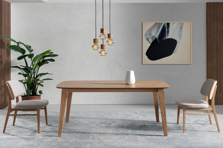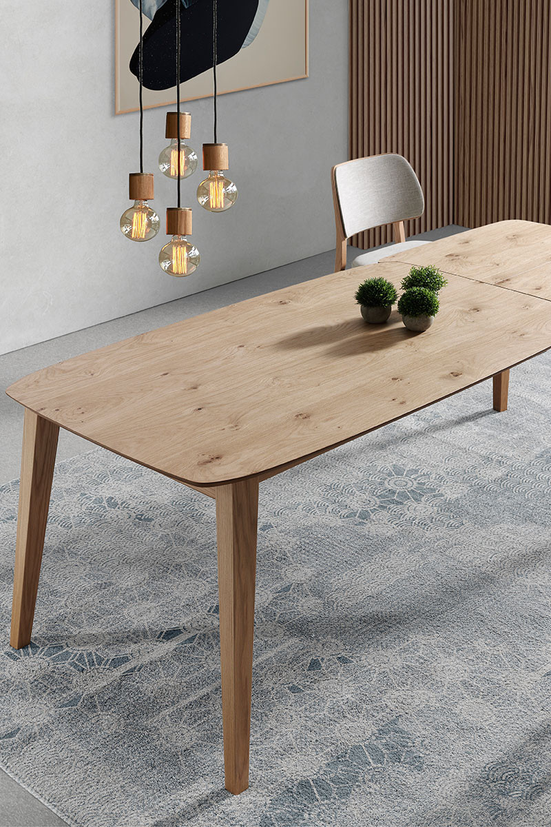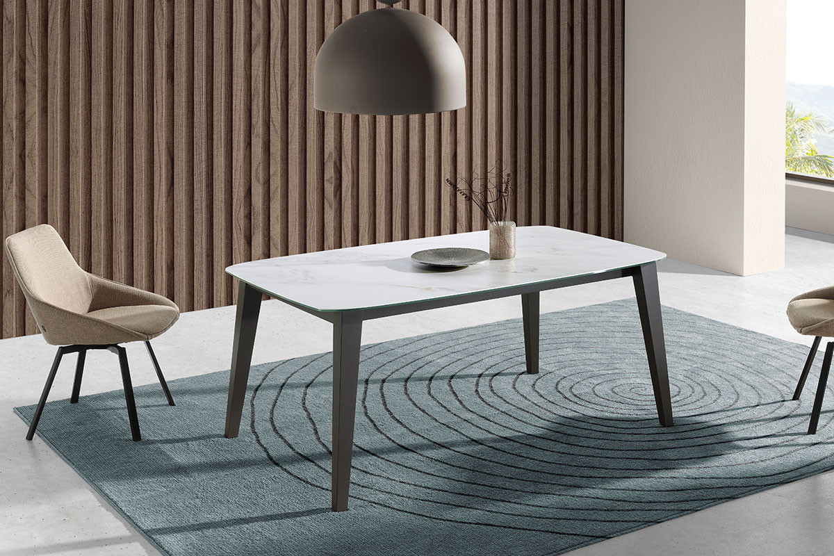 Tonne tiene las patas de madera de haya y está disponible en varios acabados. El tablero puede ser en distintas maderas de roble o nogal, lacado o porcelánico en varios acabados, para que puedas elegir el que más te guste o más se adapte a la decoración de tu hogar.