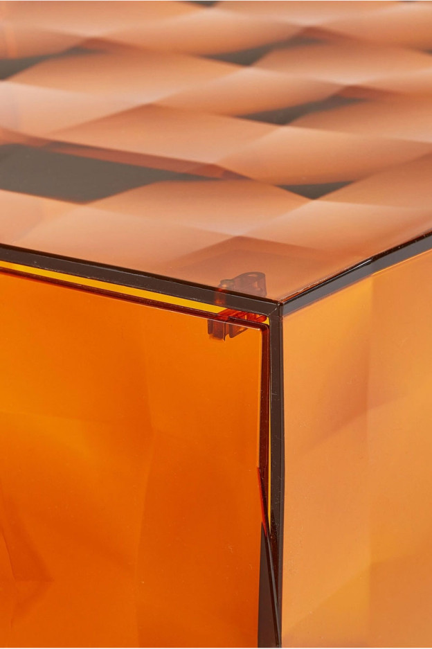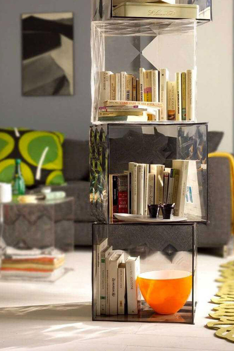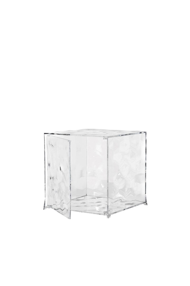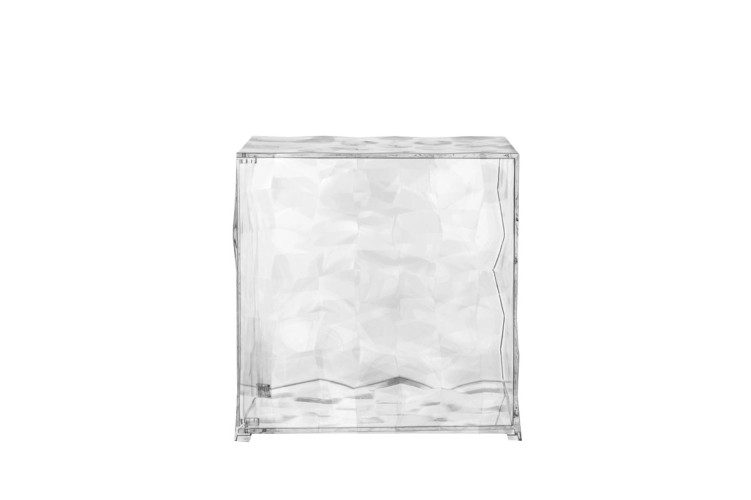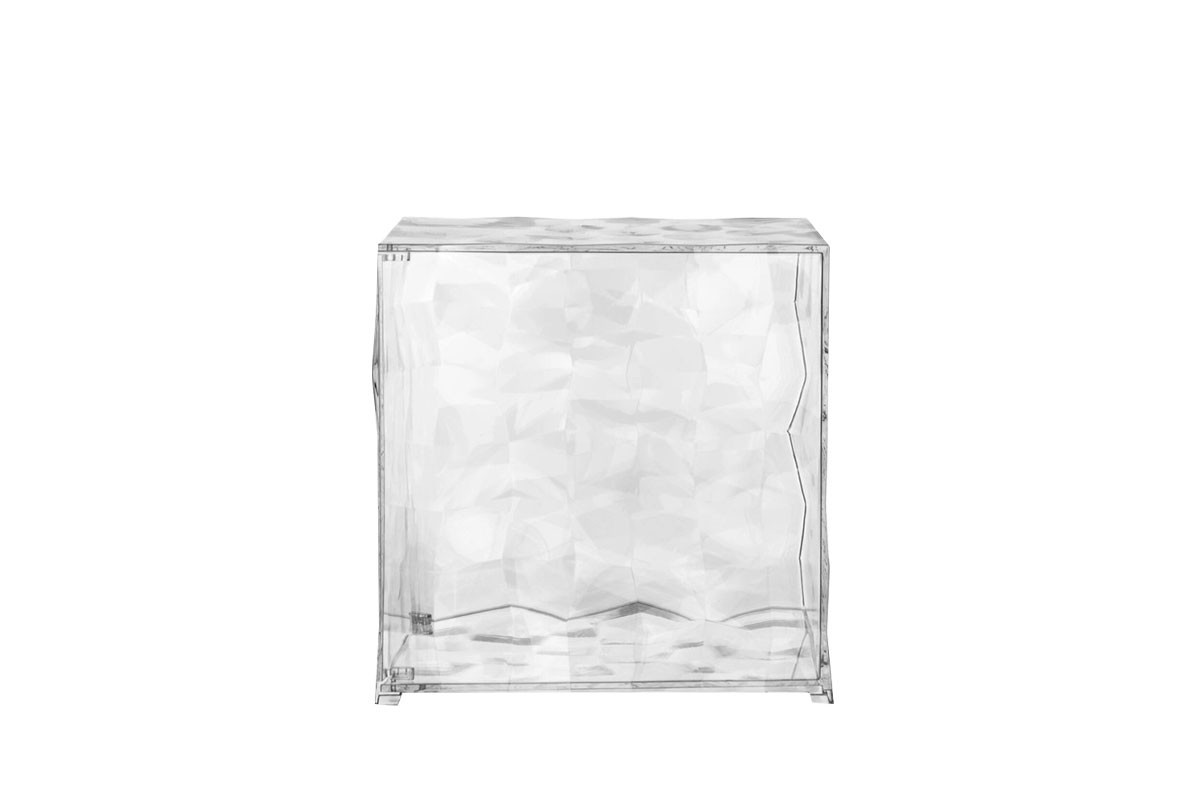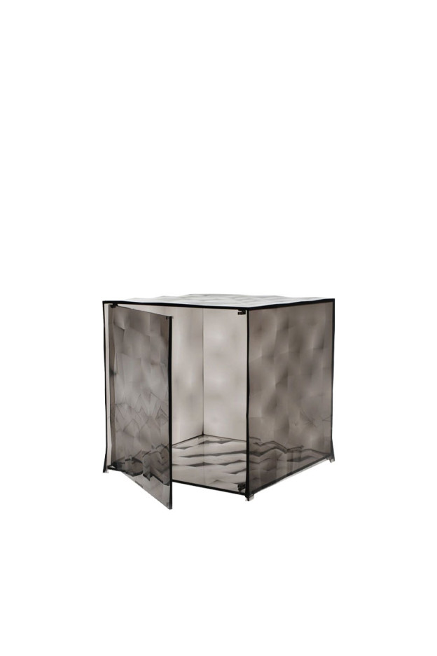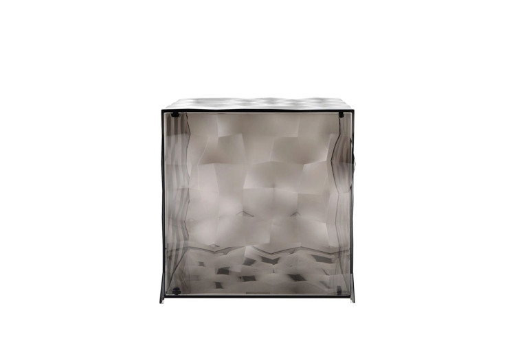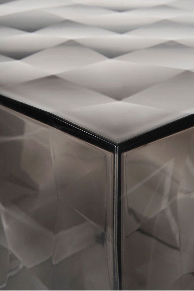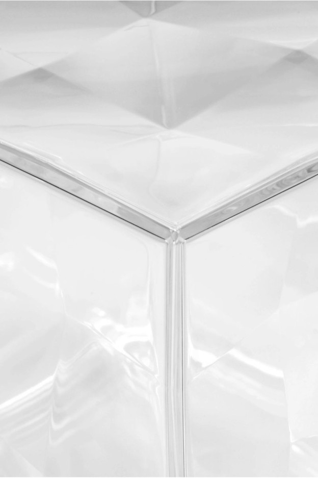 Optic es un cubo contenedor de polimetacrilato de metilo disponible en dos versiones, cerrado con puerta o con una cara abierta, la superficie está decorada con pirámides de base cuadrada ligeramente en relieve que, con la superficie de espejo o transparente, crean un efecto óptico de gran impacto. Optic ofrece infinitas posibilidades de combinación. Se pueden combinar varios Optic unos sobre otros o en una composición lineal y según la cantidad y la disposición se prestan a desempeñar las más variadas funciones regalando al ambiente un gran toque de encanto.