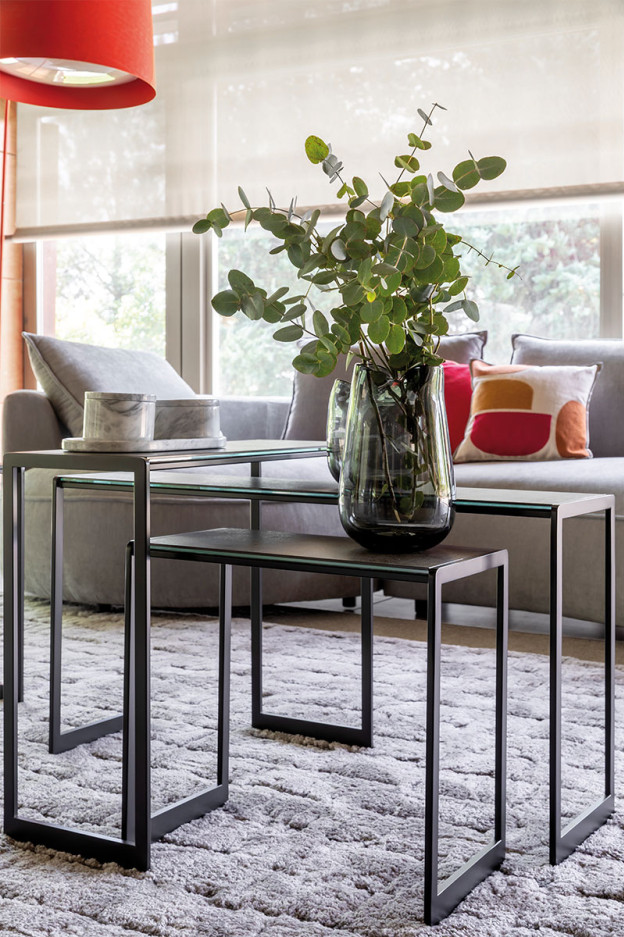 Nuestra mesa Aura tiene diferentes alturas para que puedas combinarlas entre ellas y conseguir así romper la norma tradicional de la mesa de centro.