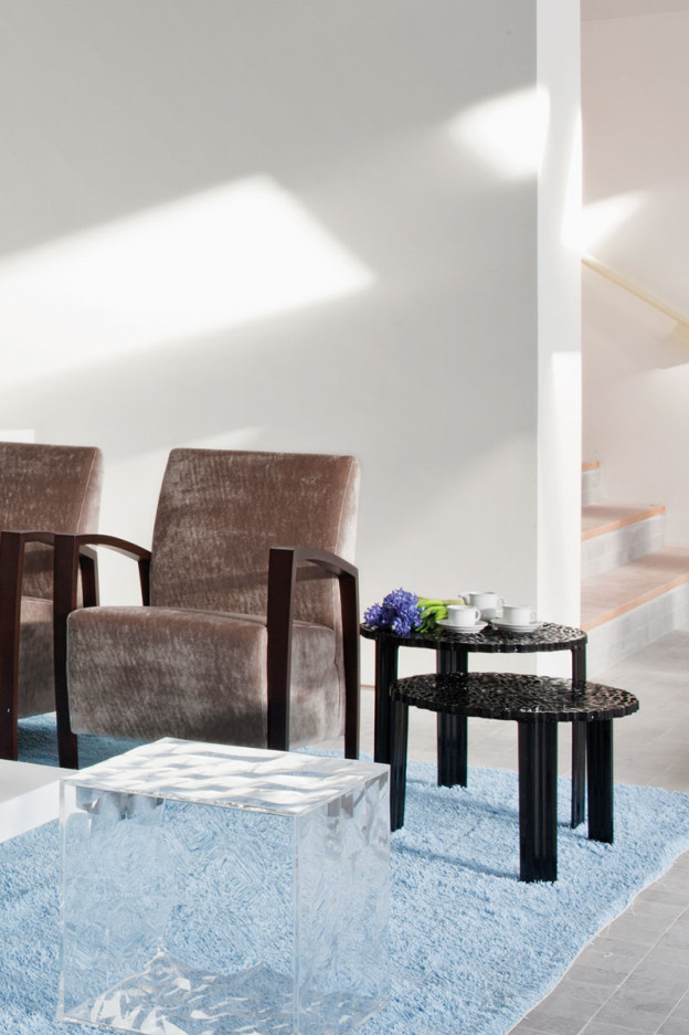 Una línea de mesitas en tres alturas diferentes, nacen del deseo de investigar e innovar sobre las superficies para lograr nuevos efectos tanto visuales como táctiles.