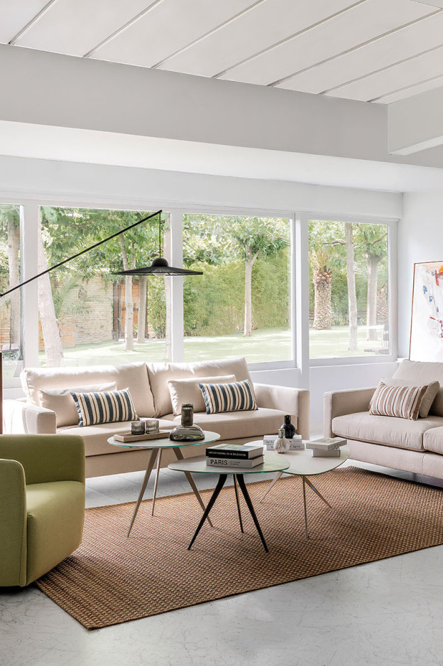 Nuestra mesa de centro Trendy tiene la estructura de acero lacado en varios colores mates y el sobre es de vidrio o cerámica en varios acabados.