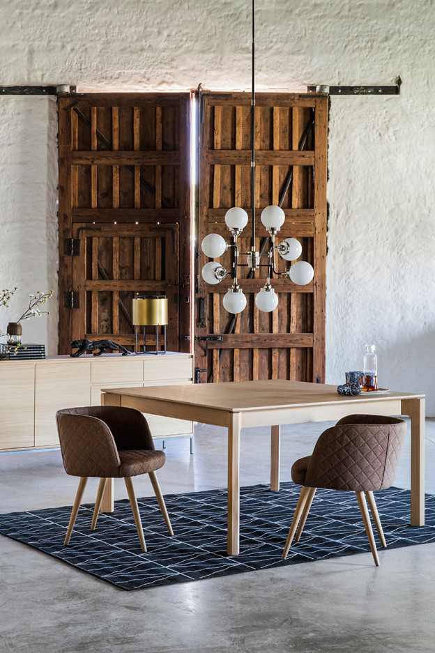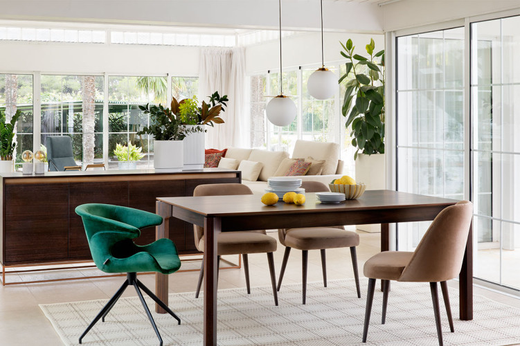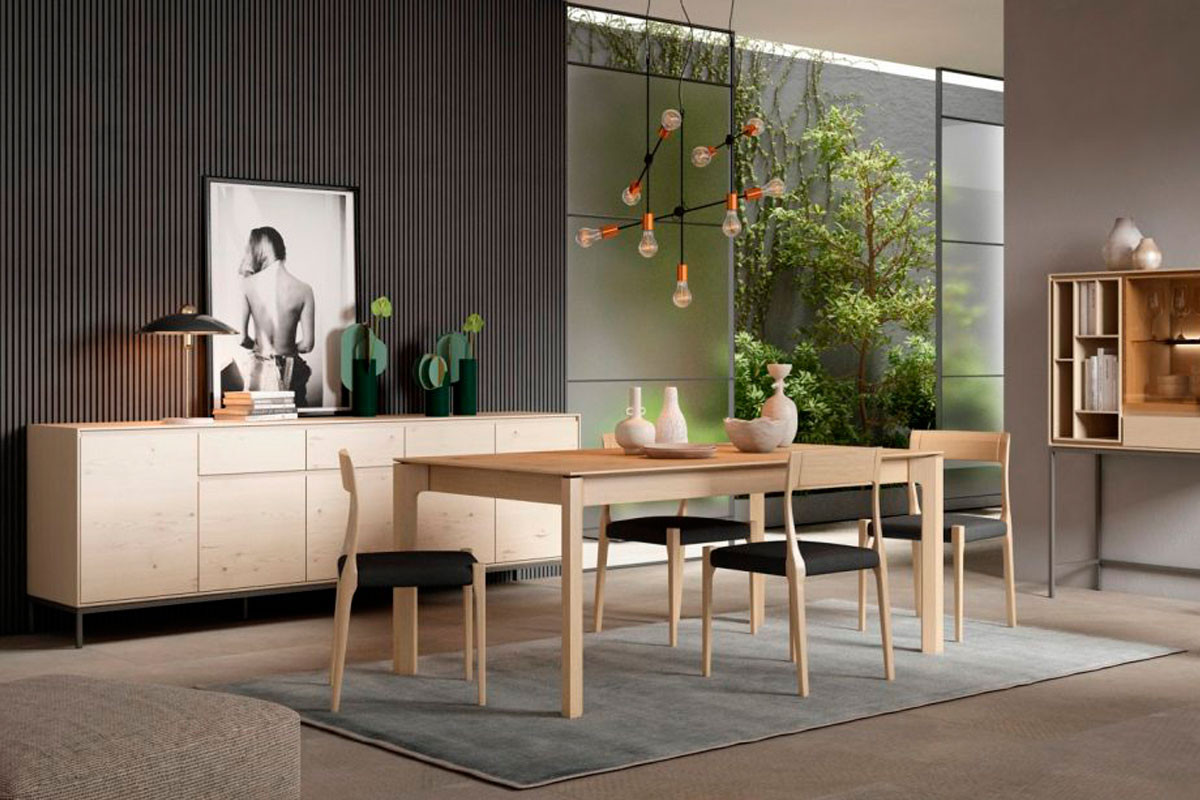 Nuestra mesa Mercury tiene la estructura chapada en madera natural de roble, nogal o lacada en varios colores, el sobre también puede ser chapado en madera natural de roble, nogal, lacado en varios colores o laminado de cerámica en varios acabados distintos para que puedas crear la mesa que más se adapte y combine con la decoración de tu hogar.
