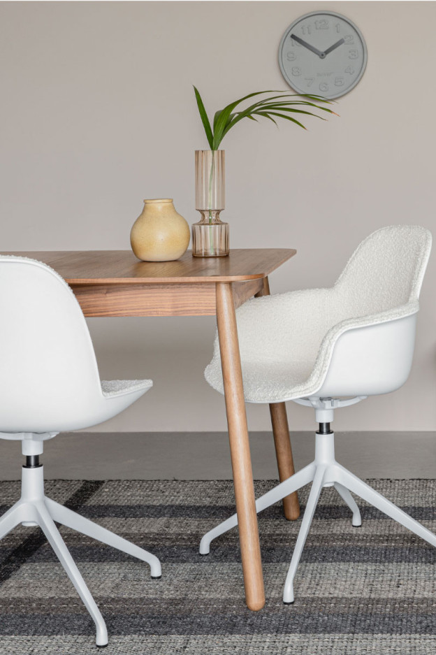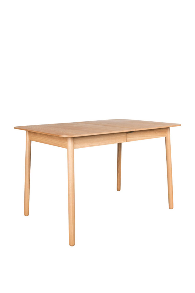 Mesa de comedor extensible. Sobre de MDF chapado en distintos acabados. Patas de madera maciza. Disponible en varios acabados.
