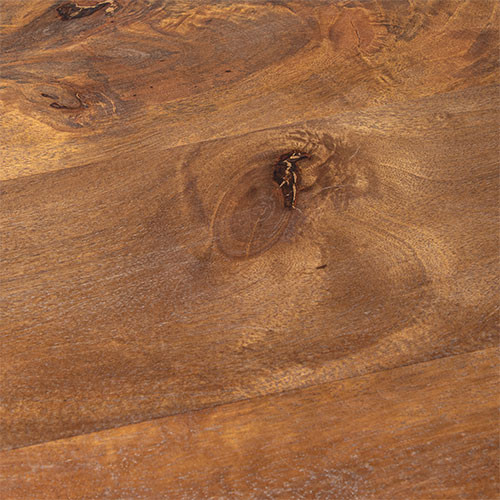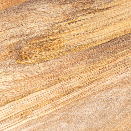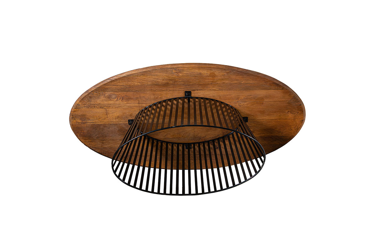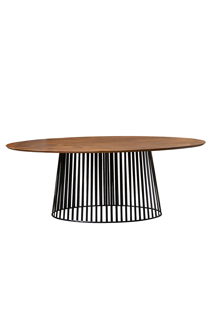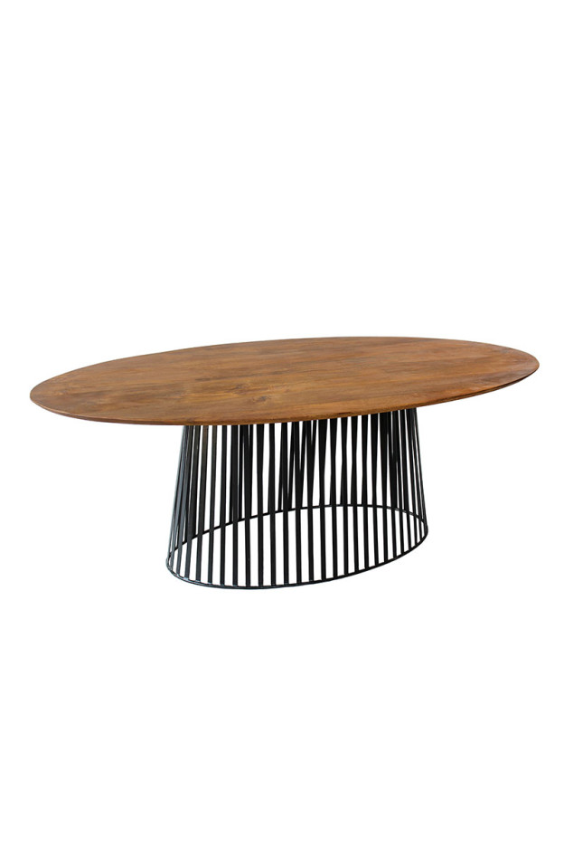 Su estructura es un pie metálico, mientras que su sobre, ovalado, está fabricado en madera de mango, aportando así naturalidad y calidez a la estancia. Además, cuenta con 28mm de grosor.