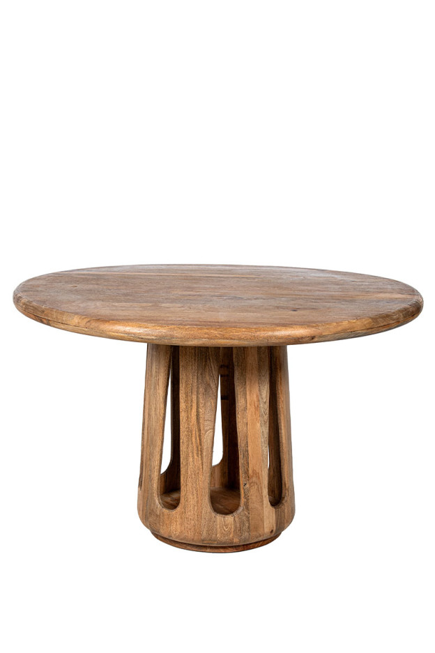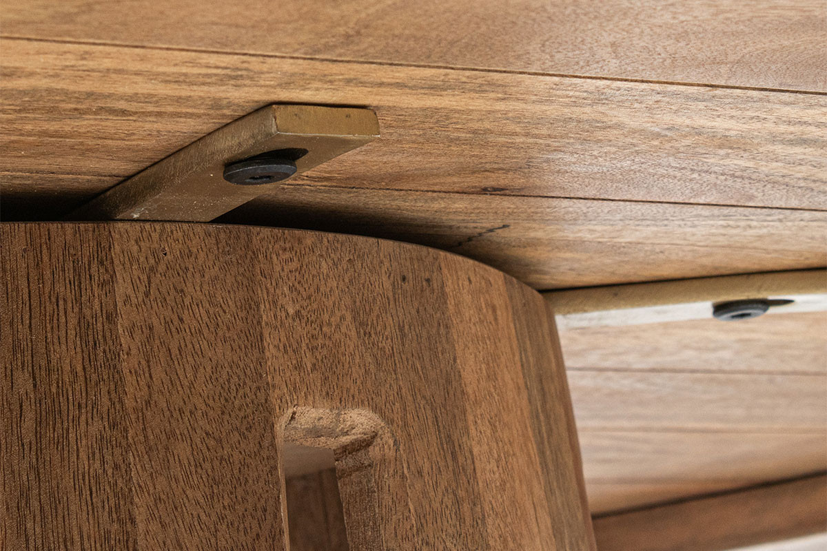 Está fabricada en madera de mango, por lo que cada mesa es única, con vetas y tonalidades que reflejan la verdadera belleza de la madera.