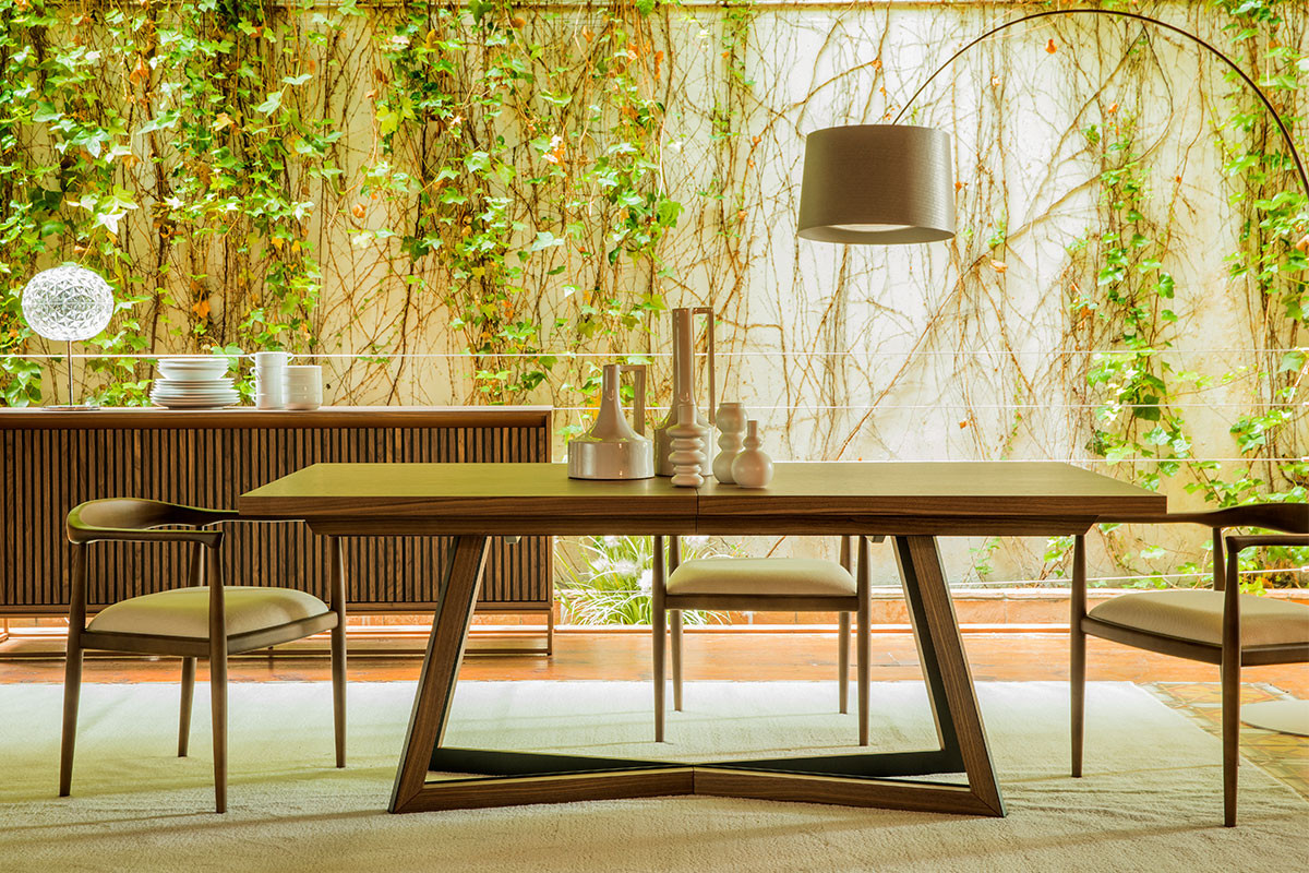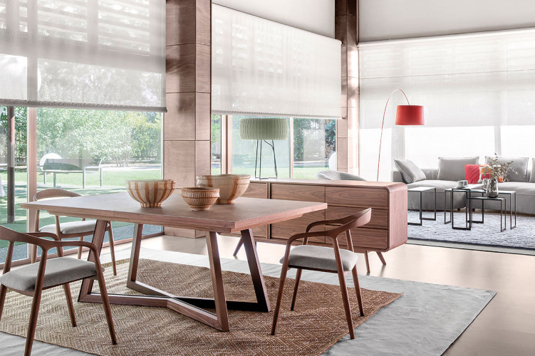 Mar puede ser una mesa fija o extensible, la apertura del extensible es sincronizada en el centro.