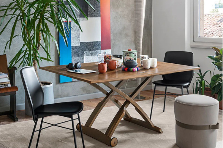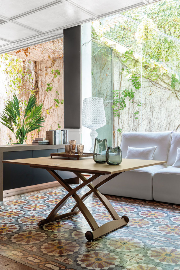Nuestra mesa de centro Mascotte podrás utilizarla en tu sala de estar o comedor, es de madera, extensible y ajustable a diferentes alturas.