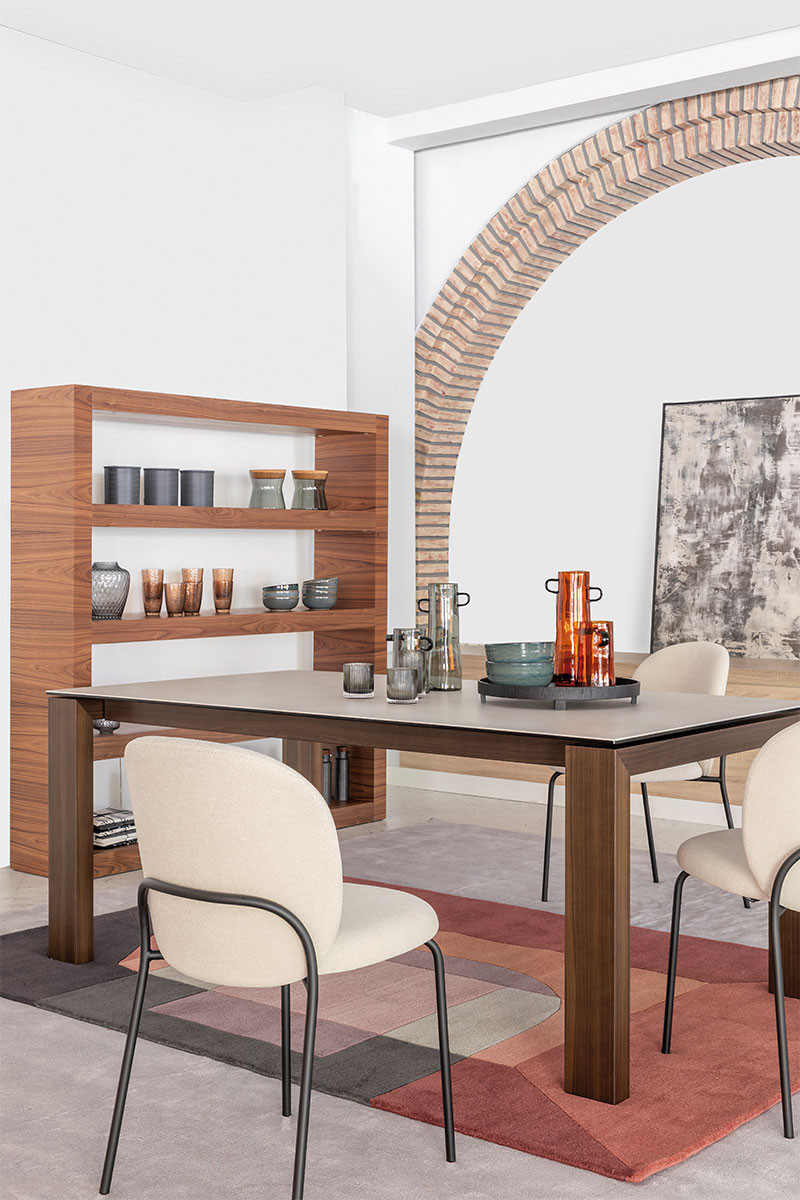 Gracias a su sistema extensible de 60 cm, Sigma se adapta con gran facilidad a cada ocasión. Es una mesa idónea para reuniones familiares, con amigos…