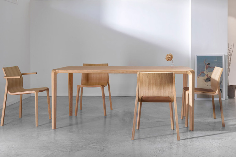 Técnicas tradicionales del curvado de la madera con el diseño más comtemporáneo hacen de nuestra mesa Silu una mesa elegante, con carácter y personalidad. Un diseño que otorga todo su protagonismo a la unión entre la pata y el sobre, la pata se curva en el encuentro con el sobre de madera maciza.