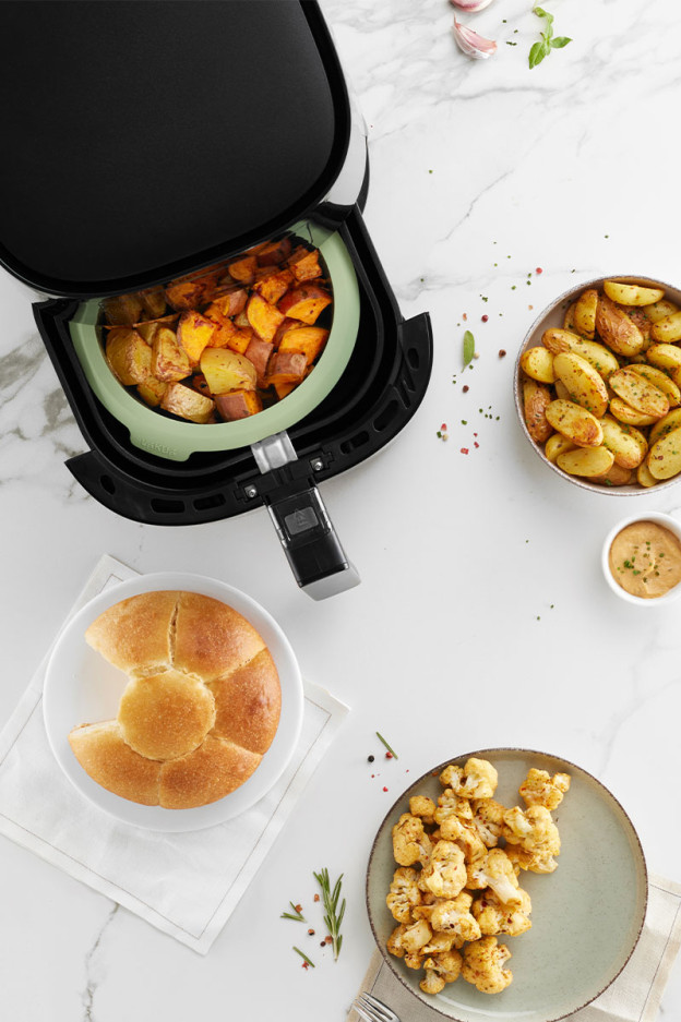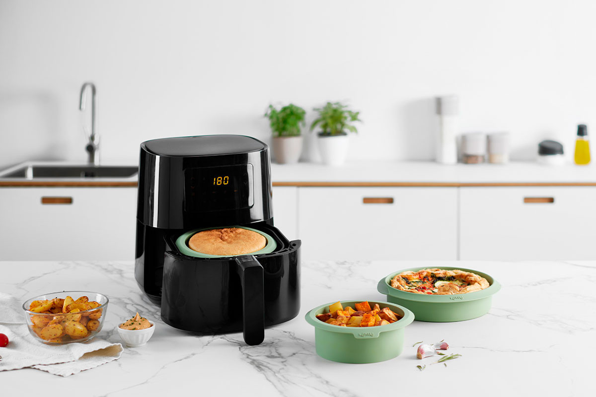 Apto para freidoras de aire pequeñas y medianas, te permite preparar desde jugosos platos hasta irresistibles postres.