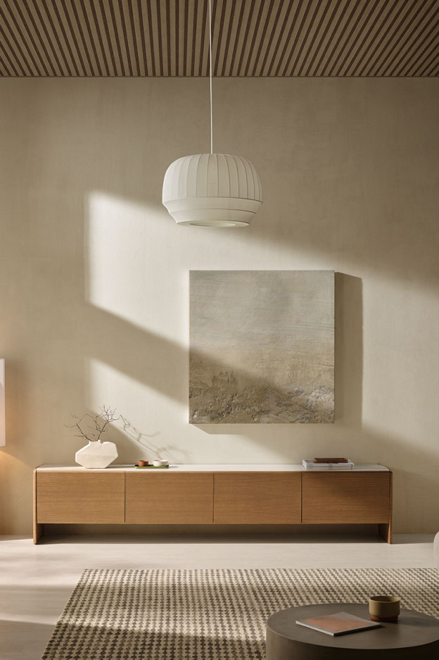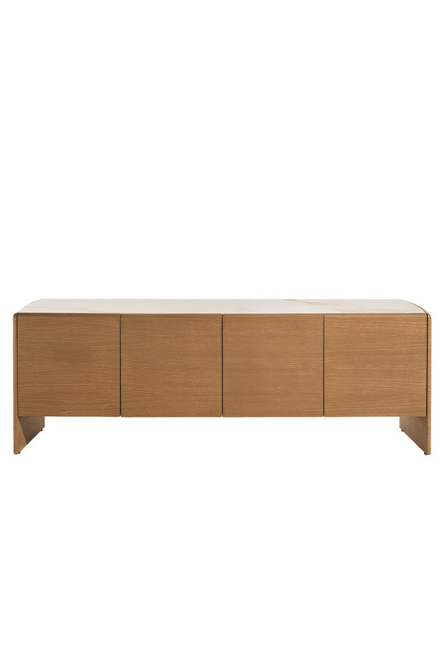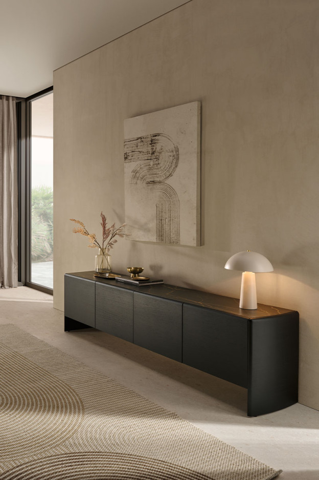 Disponible en una amplia gama de acabados, desde diferentes tonalidades de roble, lacados y la posibilidad de escoger el sobre en porcelánico.