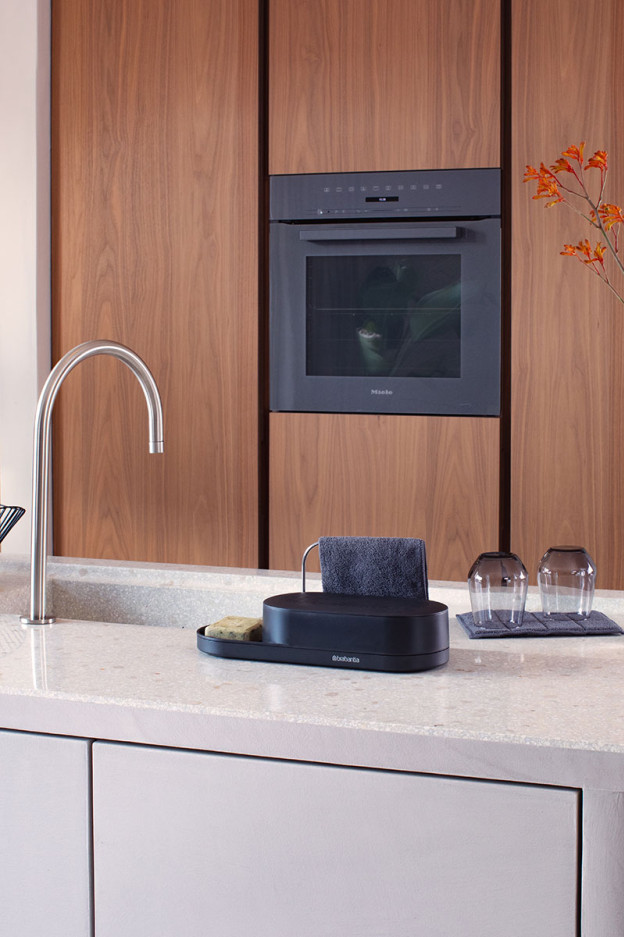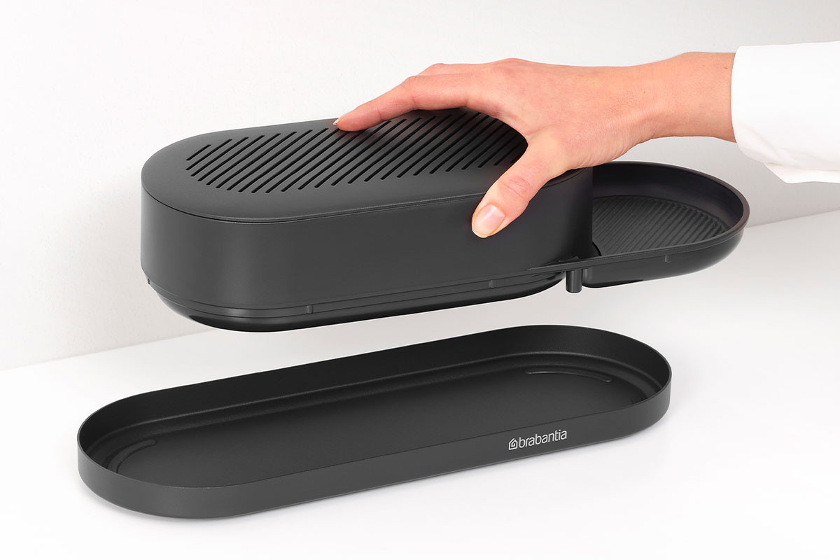 Con este organizador conseguirás tener tu encimera limpia y ordenada siempre, gracias al espacio que tiene para guardar los utensilios de limpieza de la cocina. Está fabricado con plástico.